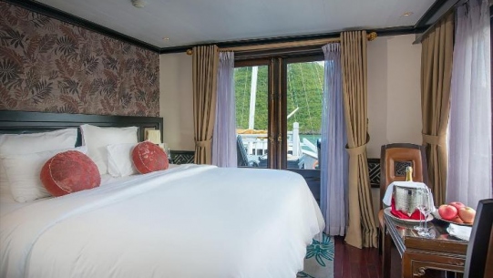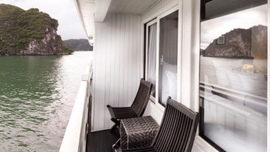 Cabin description – Vị trí: tầng 2– Diện tích: 18 m²– Loại phòng: Twin or Double – Tối đa số người trong phòng: 2 người lớn + 1 trẻ em dưới 12 tuổi (extra bed - kê giường phụ, sẽ tính thêm phí, trẻ em từ 5-11 tuổi tính phí là 3.000.000 VNĐ/trẻ, trẻ em dưới 5 tuổi miễn phí)– Có ban công riêng ![]() Cabin facilities