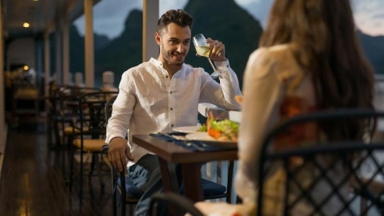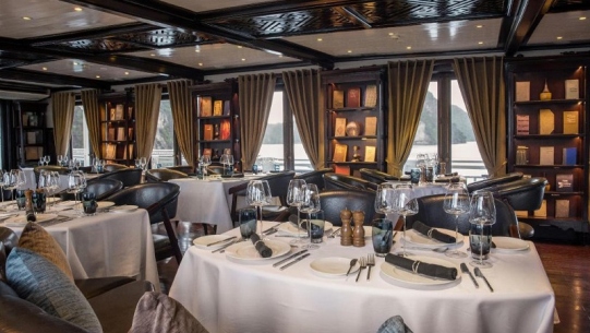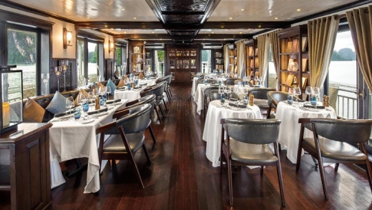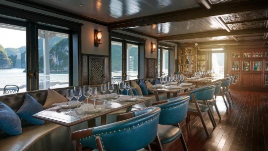 Nhà hàng và Bar, nằm trên tầng 3 - tầng trên cùng, nơi lý tưởng để thưởng lãm vẻ đẹp kỳ vĩ của Vịnh Hạ Long với view 360 độ, mang lại cho du khách sự thư giãn tuyệt vời.