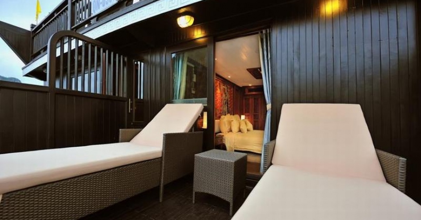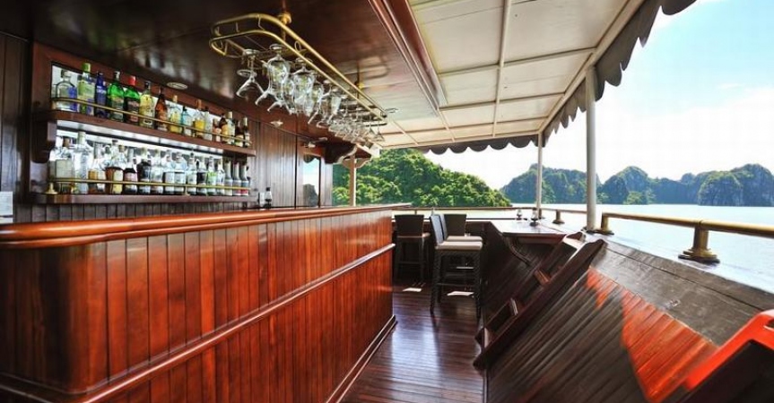 Du khách sẽ được phục vụ bữa tối theo phong cách hoàng gia tại nhà hàng sang trọng tại tầng 3 của du thuyền. Sau bữa tiệc ẩm thực, du khách có thể thư giãn tại quầy bar*, câu mực đêm, tận hưởng một buổi trị liệu tại Le Parfum Spa* hoặc xem phim ở nhà hàng.