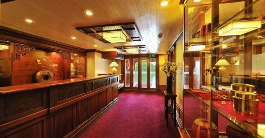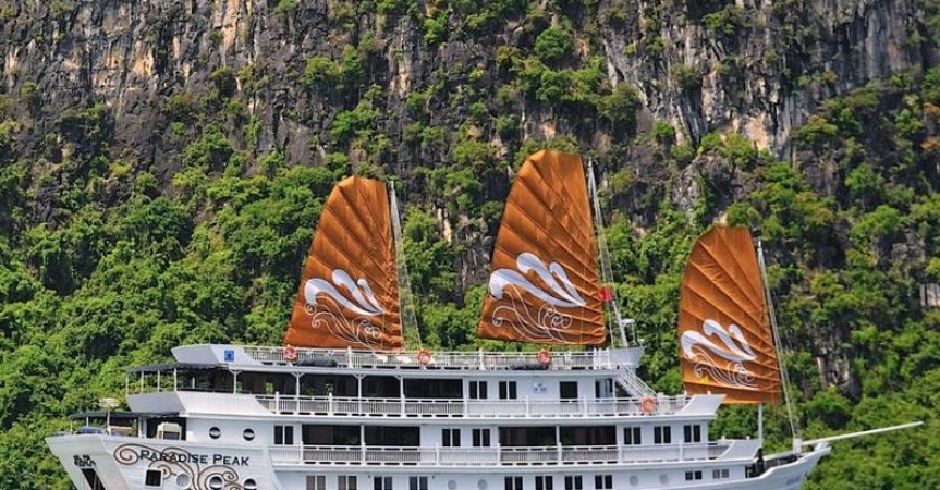 Sau khi lên Du thuyền Paradise Peak, du khách sẽ được hoàn thiện thủ tục nhận phòng, ghé thăm nhà hàng để thưởng thức đồ uống chào mừng và lắng nghe quản lý tàu giới thiệu về lịch trình trong chuyến đi 3 ngày 2 đêm cũng như những quy định về an toàn trên tàu.