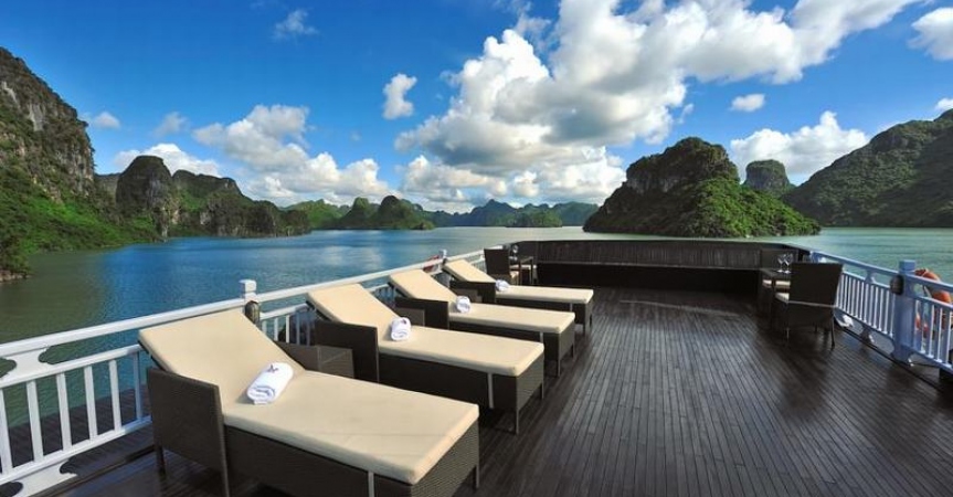 Sau bữa trưa, du khách có thể thư giãn và ngắm nhìn toàn cảnh non nước hữu tình của Vịnh Hạ Long với những hang động nghìn năm sóng cuộn hoặc trải nghiệm liệu trình đặc biệt tại Le Parfum Spa* cùng đội ngũ trị liệu viên xuất sắc.