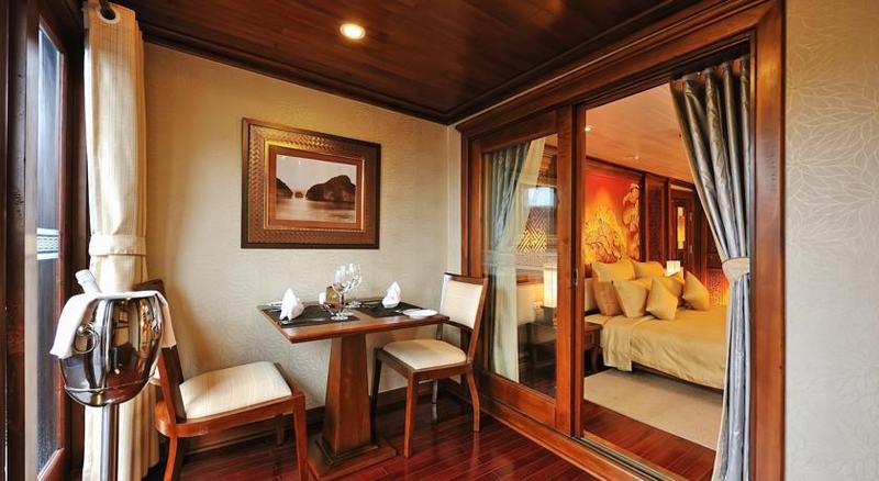 Du khách có thể thưởng thức bữa tối ở nhà hàng, trên boong tàu hoặc ngay trong phòng nghỉ. Nếu du khách chưa thử đi câu mực, đây sẽ là cơ hội cuối cùng để trải nghiệm hoạt động thú vị này. Bên cạnh đó, thư giãn trong phòng và thưởng thức một bộ phim lãng mạn cũng là sự lựa chọn hoàn hảo dành cho du khách sau hai ngày khám phá Vịnh.