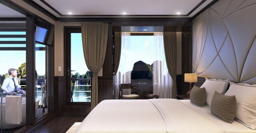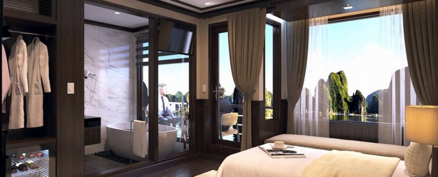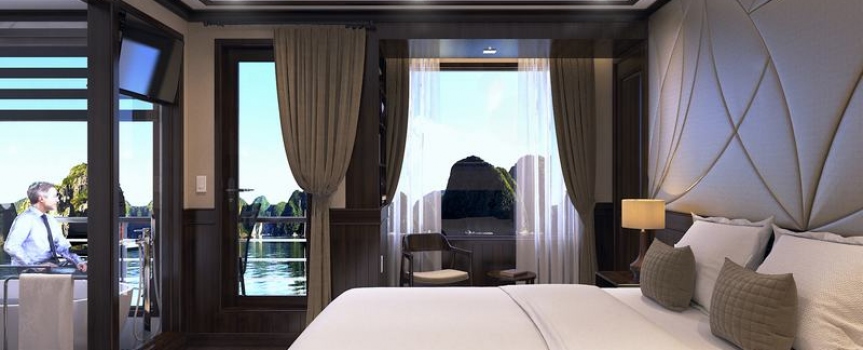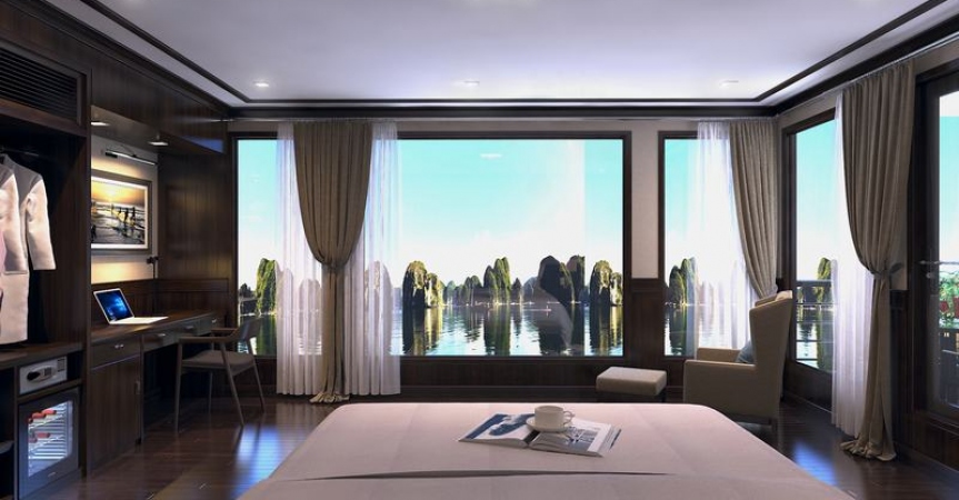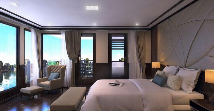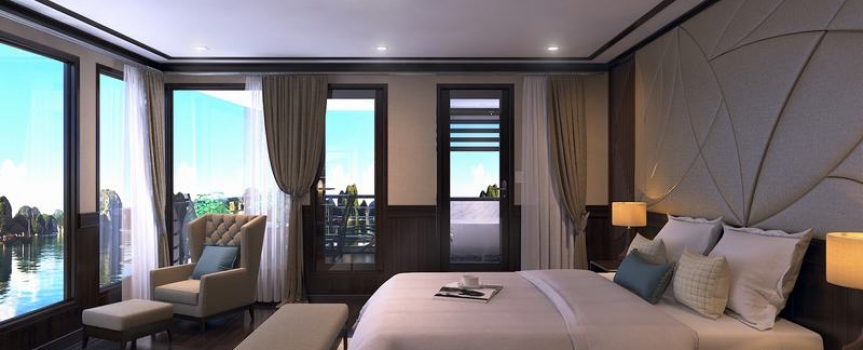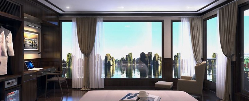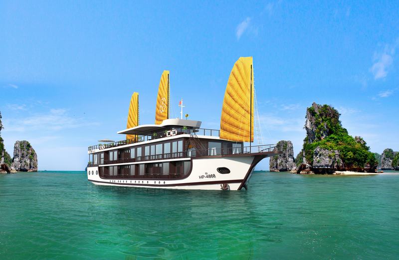 13h00: Quý khách lên tàu và làm thủ tục nhận phòng, thưởng thức bữa tiệc chào mừng; nghe thủy thủ và quản lý giới thiệu về tàu và hướng dẫn các quy tắc an toàn khi neo đậu tại phía Nam của vịnh Hạ Long, một trong “7 kì quan thiên nhiên mới” của thế giới. Vịnh Hạ Long vẫn luôn giữ được nét văn hóa từ hàng trăm năm qua, cùng nét đẹp qua nhiều thế kỉ với những vùng biển tuyệt đẹp và hàng trăm ngàn đảo đá ấn tượng.