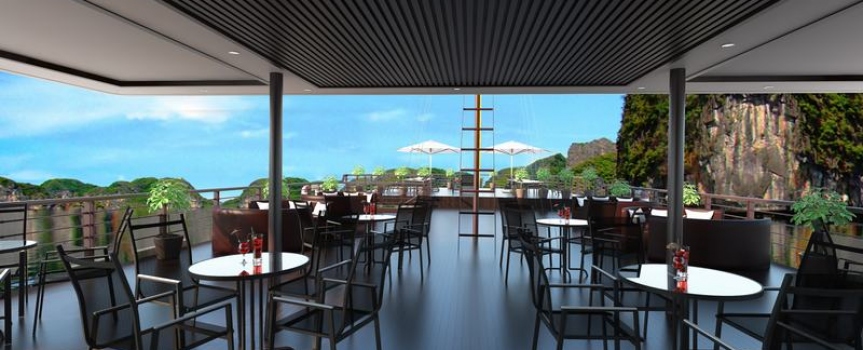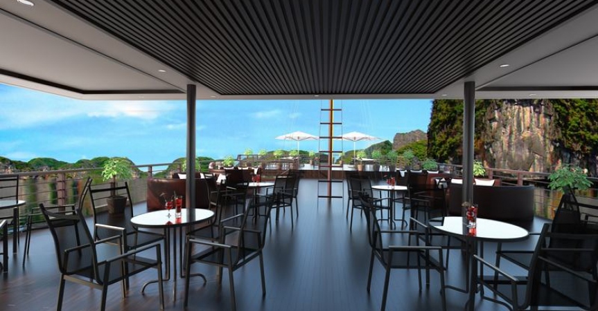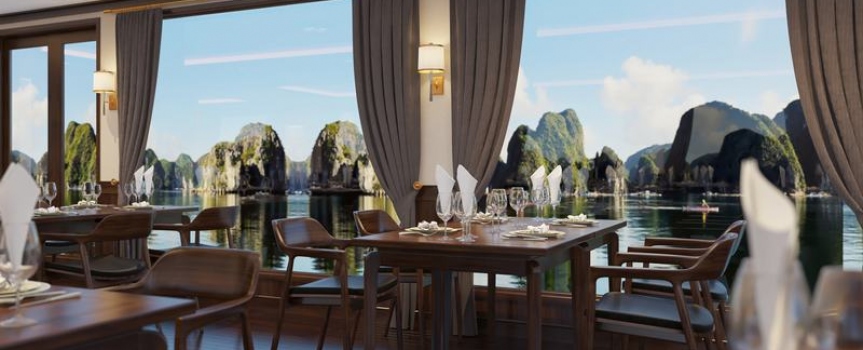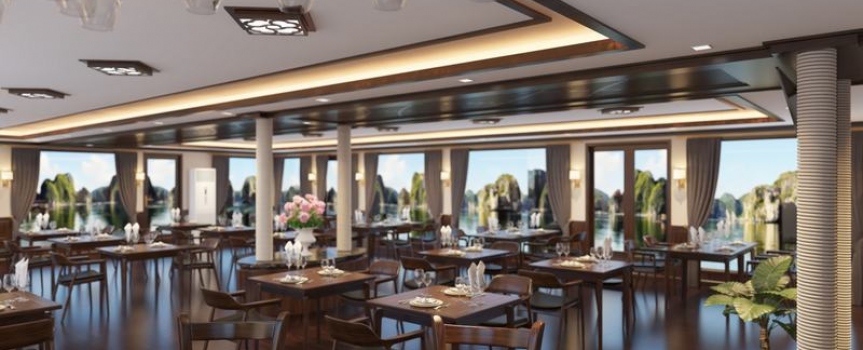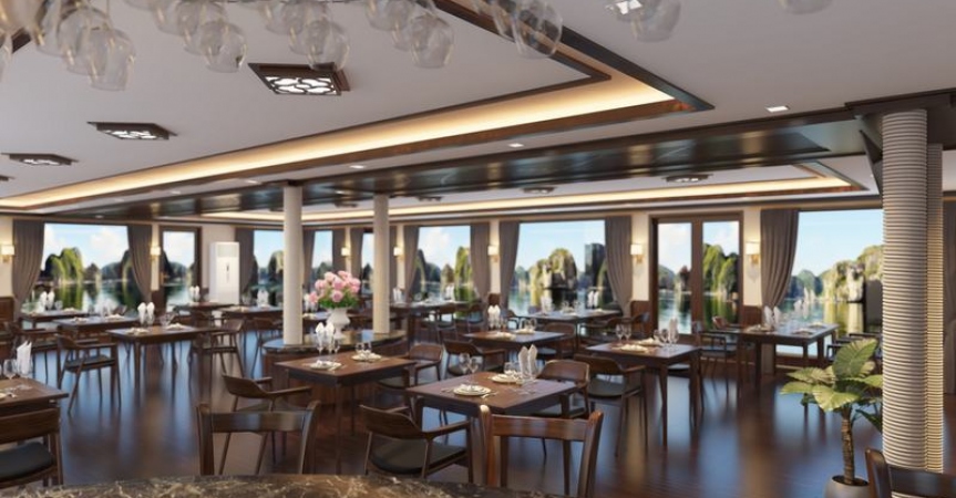 Bữa sáng được phục vụ tại nhà hàng, quý khách có thể vừa dùng bữa sáng vừa thưởng thức vẻ đẹp tuyệt diệu của cảnh bình minh trên vịnh, sau đó tiếp tục hành trình.
