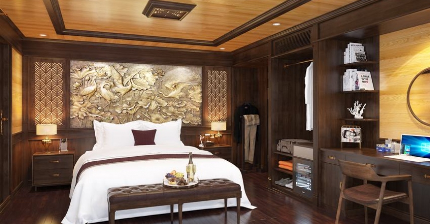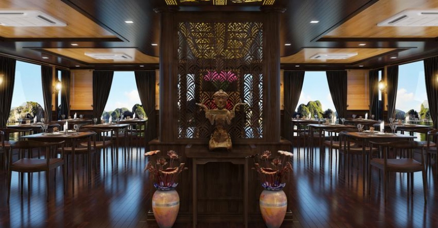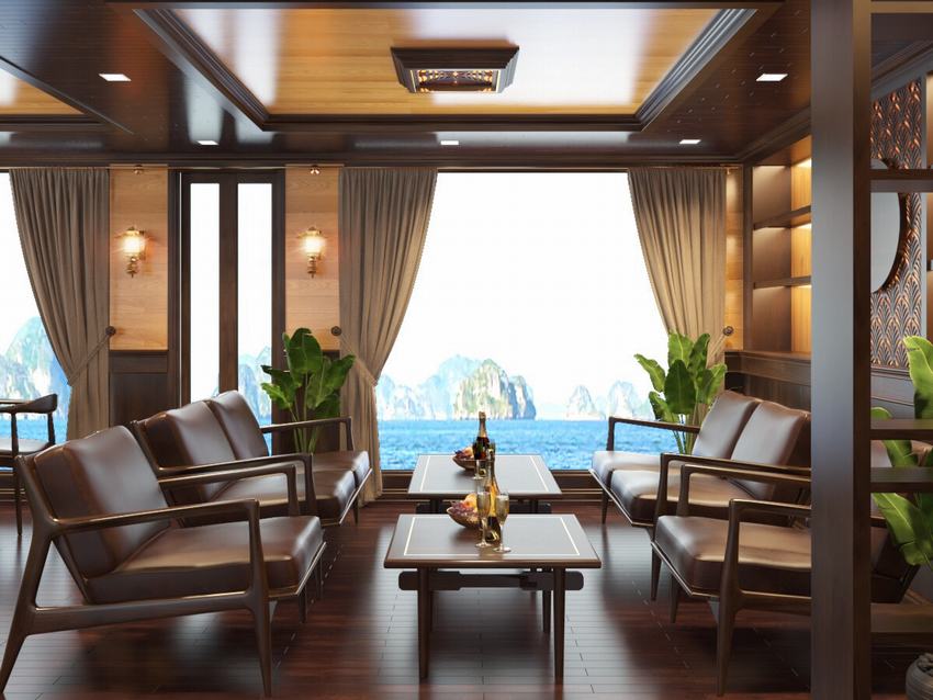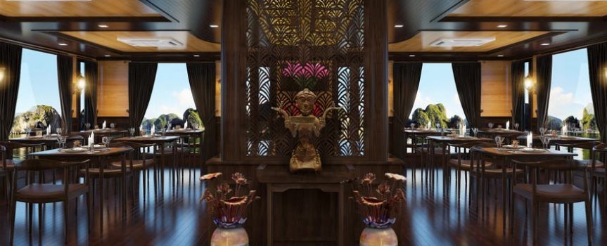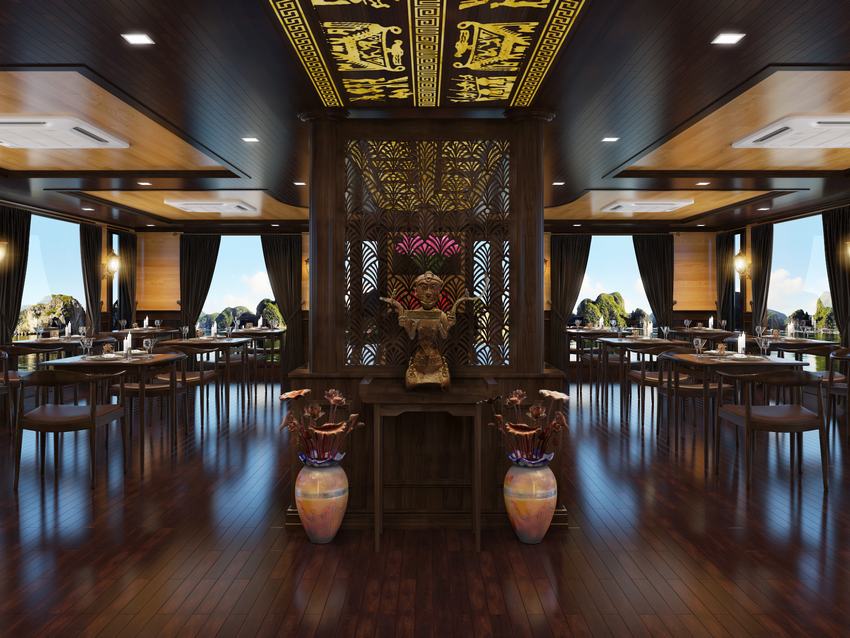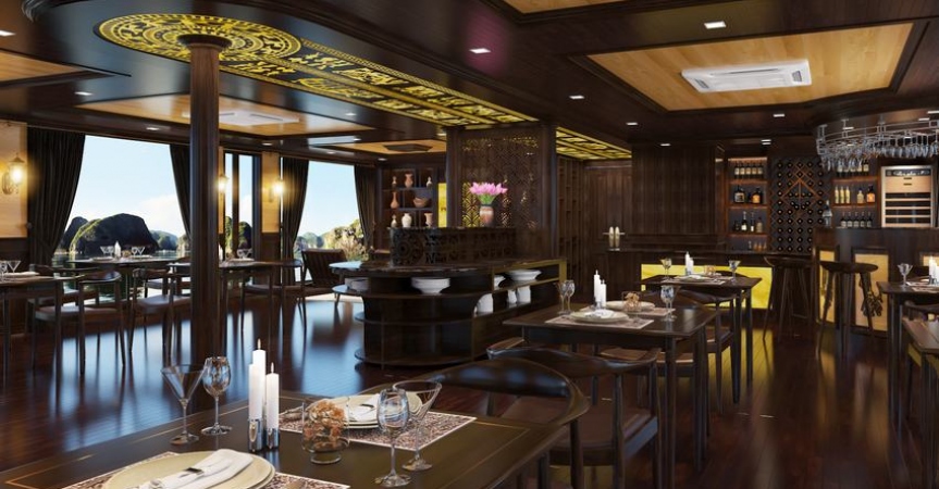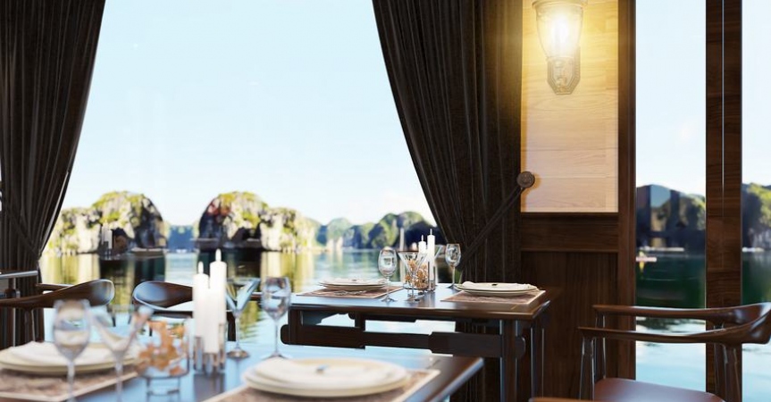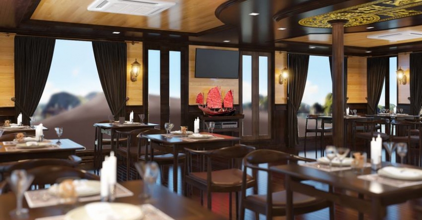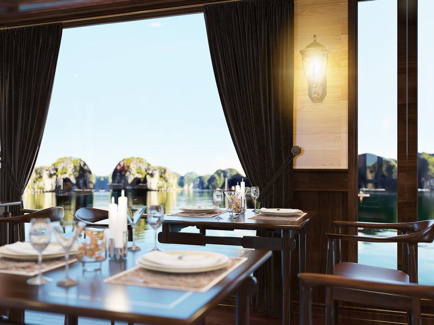 13:00 – 14:00: Du khách dùng bữa trưa trong nhà hàng cùng lúc tàu tiến sâu vào vịnh Lan Hạ và chiêm ngưỡng các đảo đá lớn, nhỏ tạo nên một cảnh sắc vô cùng hùng vĩ.