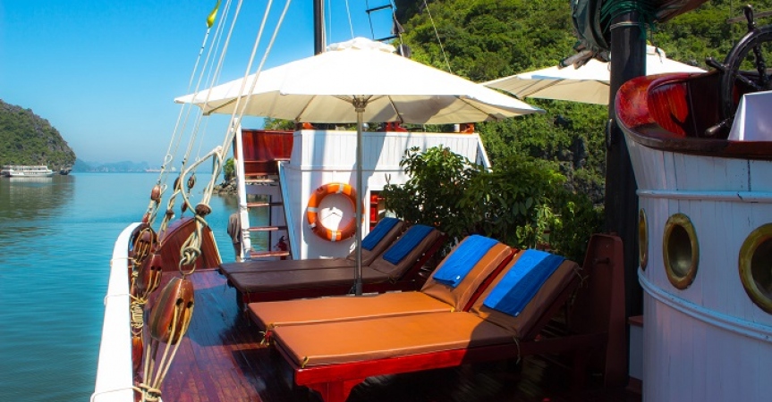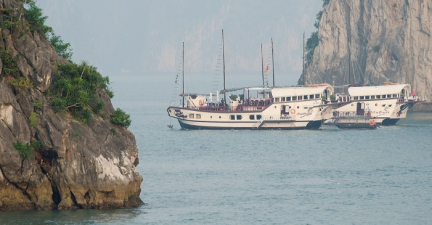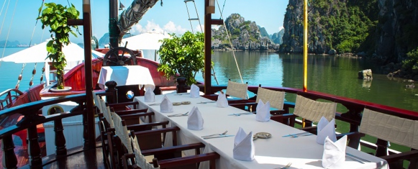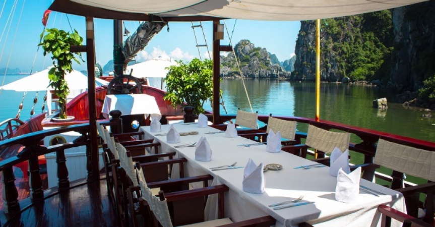 13.30 - 15.00: Vừa ăn trưa, vừa ngắm cảnh Vịnh Bái Tử Long tráng lệ.