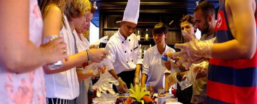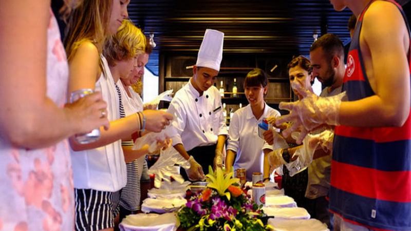 10: 00: Du khách sẽt tham gia các lớp học nấu ăn hướng dẫn trực tiếp bởi đầu bếp của Rosa Cruise. Tại đây, quý khách có cơ hội để thực hành nấu ăn các món ăn truyền thống của Việt Nam như chả giò hay ẩm thực nổi tiếng của Việt Nam.