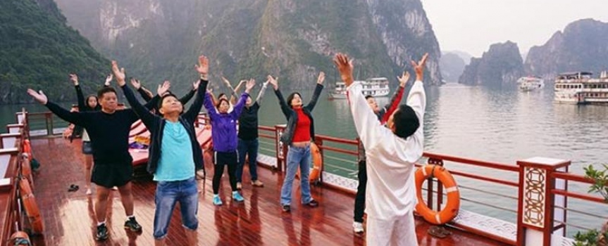 06:30: Du khách tham gia tập Tai-chi trên tàu.