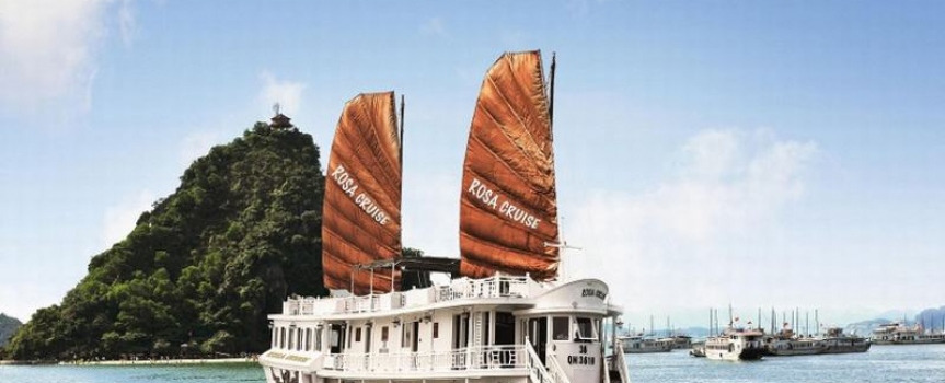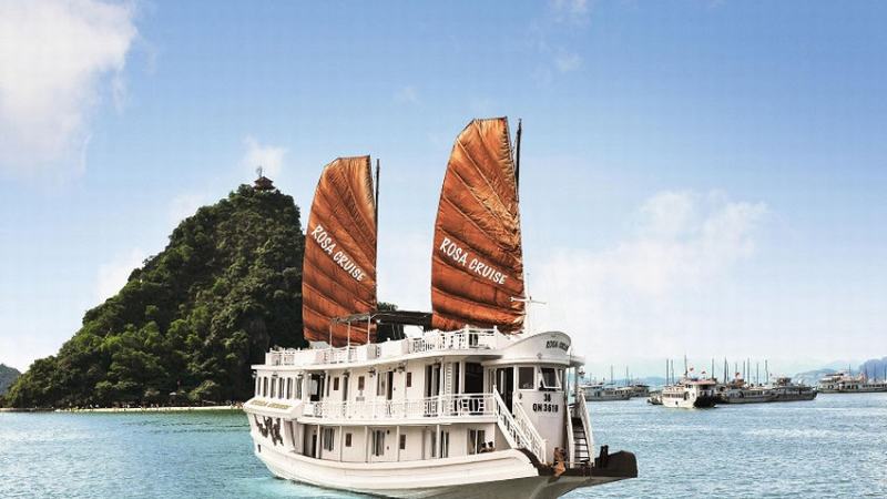 12:15: Du khác lên tàu Rosa và thưởng thức đồ uống nhẹ trong nghe khi giới thiệu ngắn gọn về lịch trình và hướng dẫn an toàn trên tàu. Sau đó du khách làm thủ tục checkin phòng trên tàu.