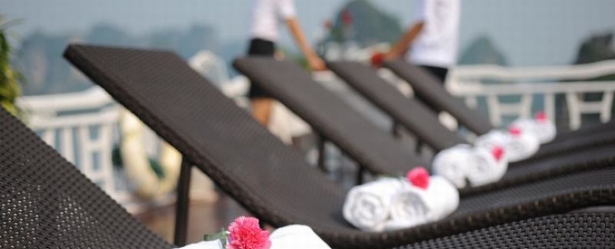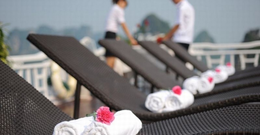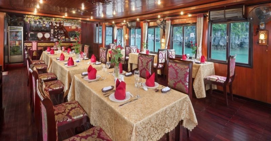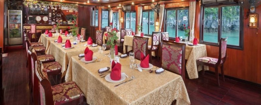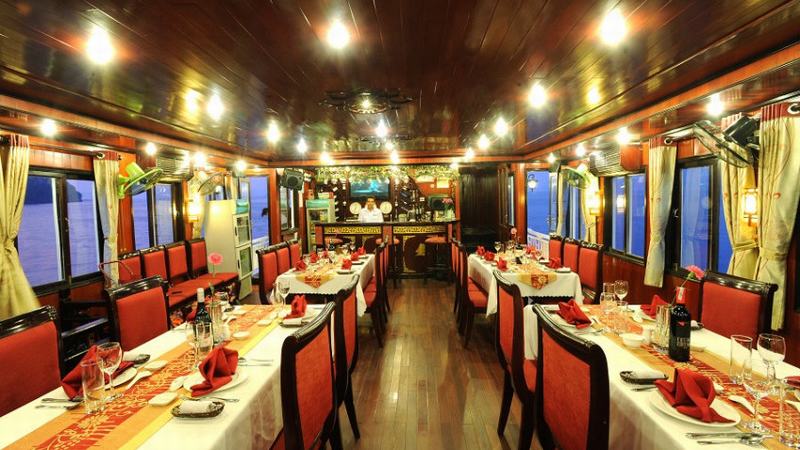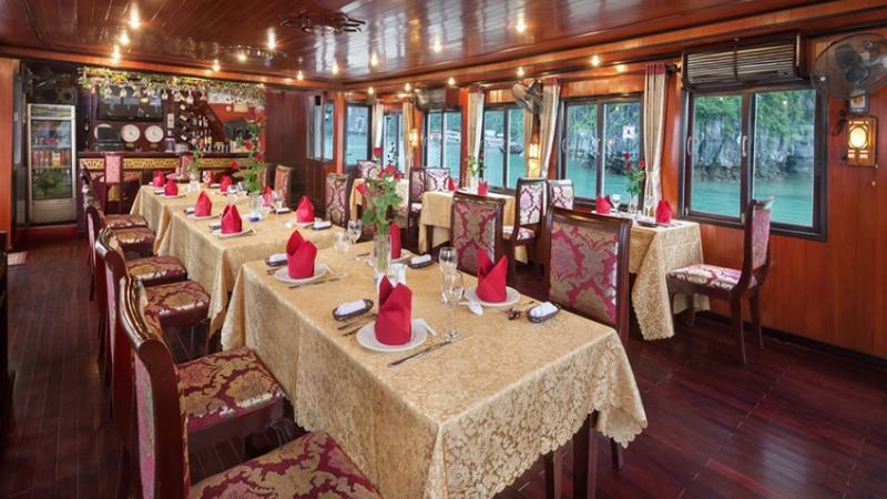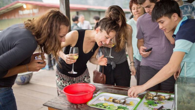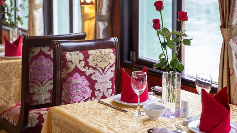 12:30: Vừa thưởng thức những món ăn mang hương sắc của biển cả du khách vừa có thể thưởng lãm những cảnh quan thiên nhiên hùng vĩ của vịnh Hạ Long