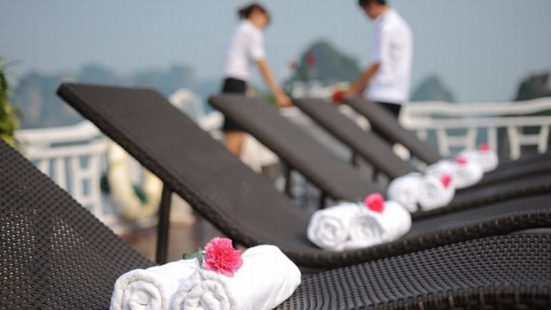 07.00: Du khách nhâm nhi một tách trà hoặc cà phê và ngắm cảnh bình minh trên vịnh