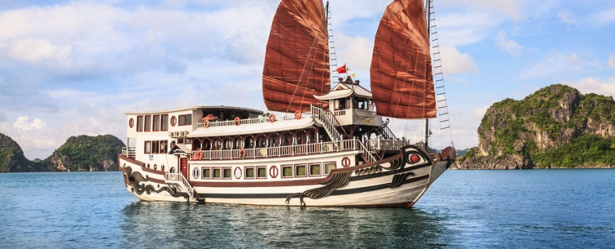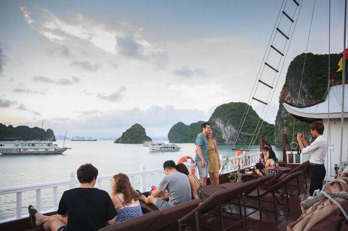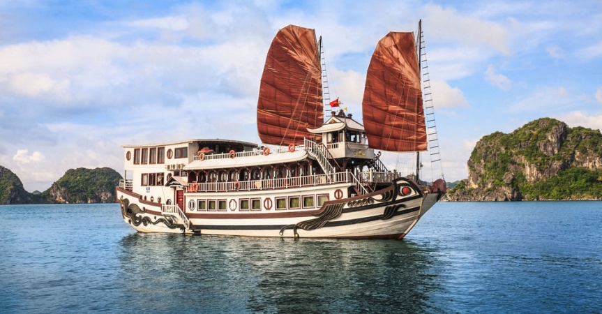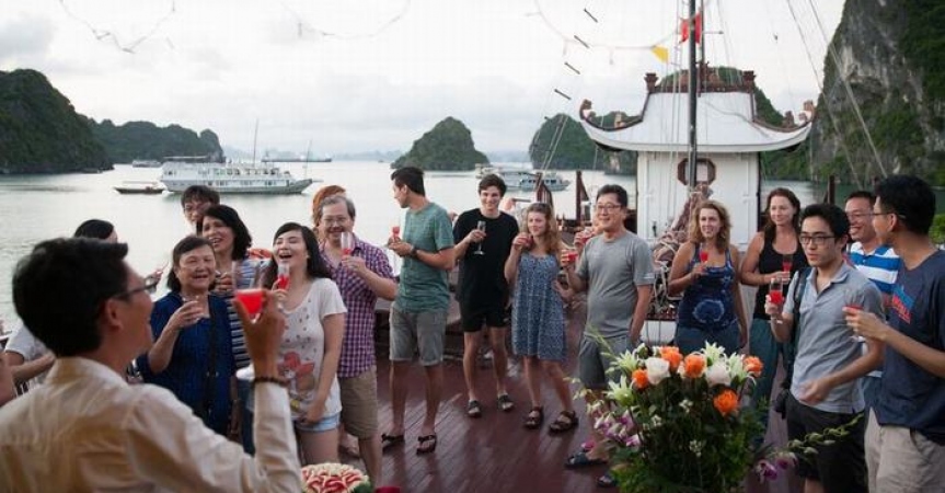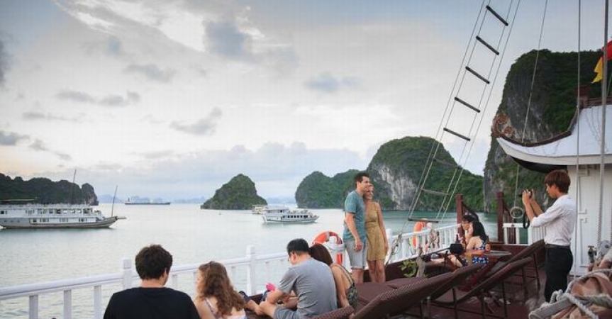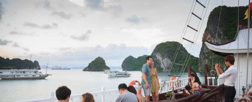 08:15: Quý khách di chuyển sang tàu du lịch ngày bắt đầu chuyến tham quan vịnh.