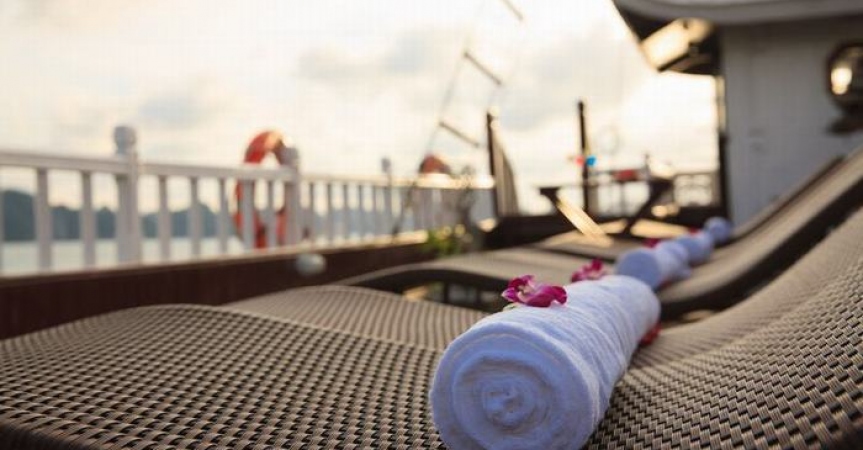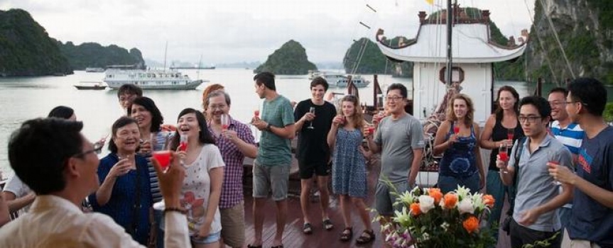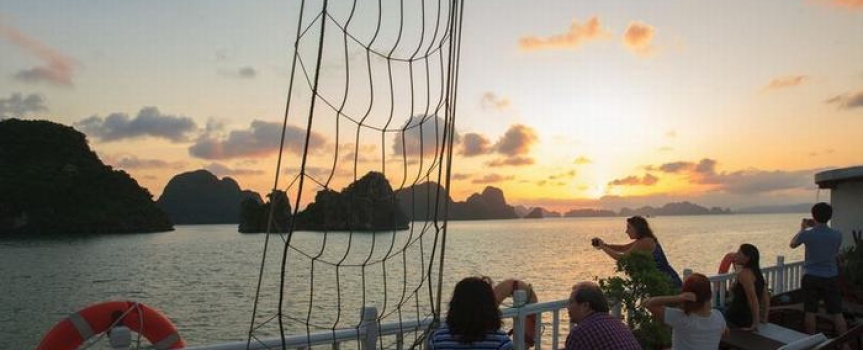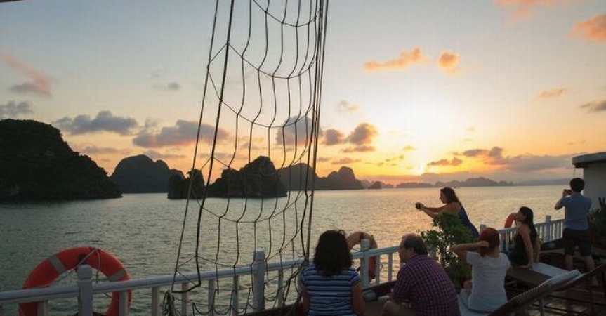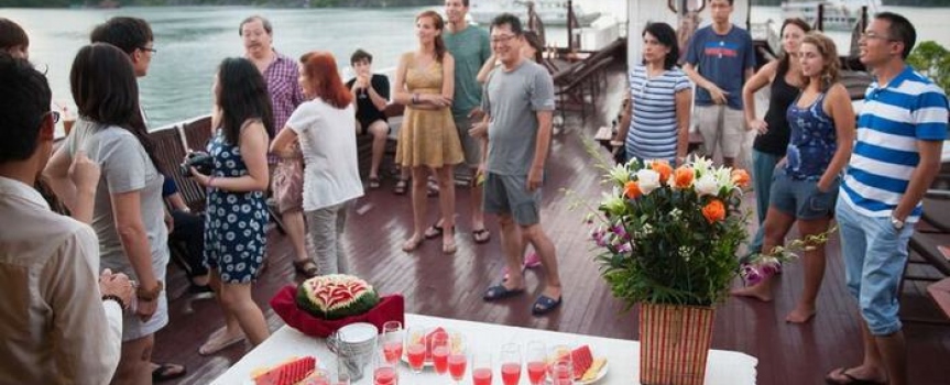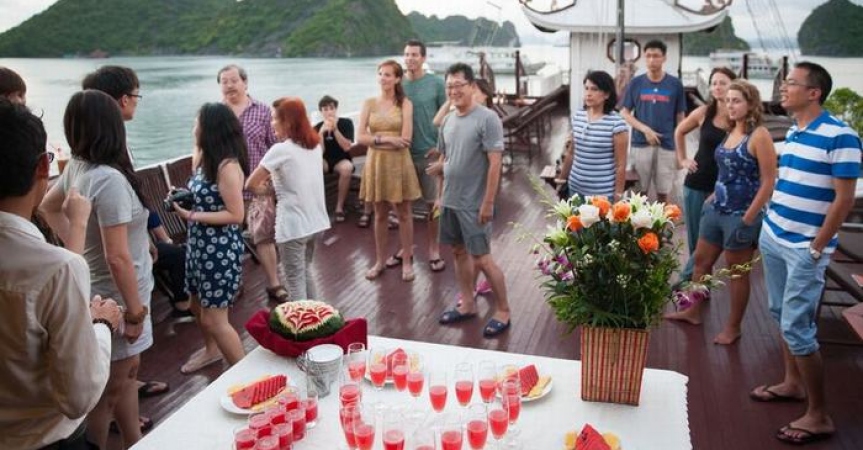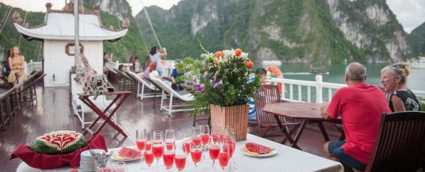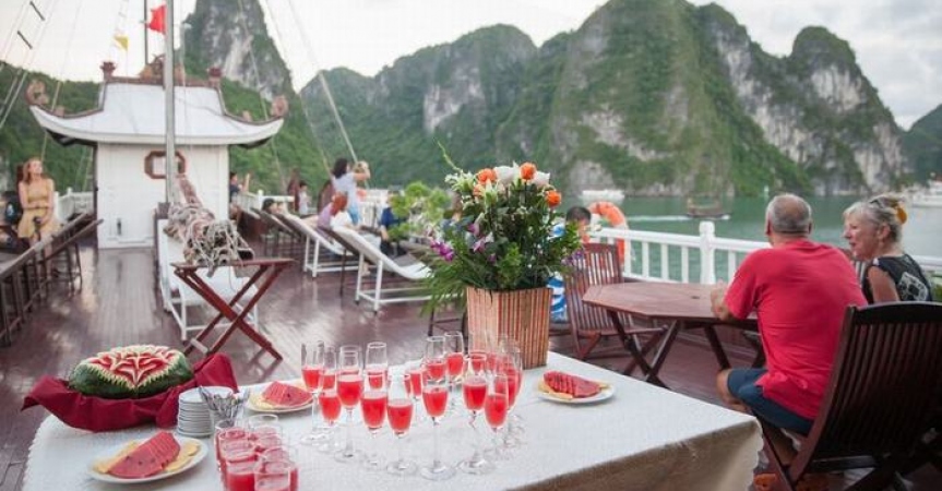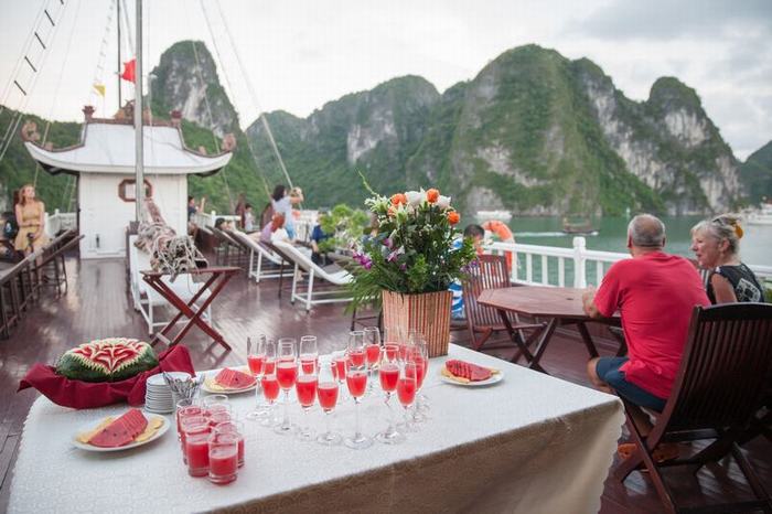 18:15 Tiệc Sunset Party trên boong tàu với rượu hoặc ly nước hoa quả và trái cây tươi, cùng nghe những bản nhạc du dương trên sundeck.