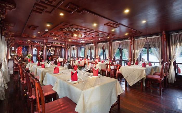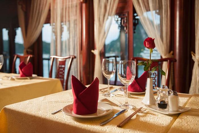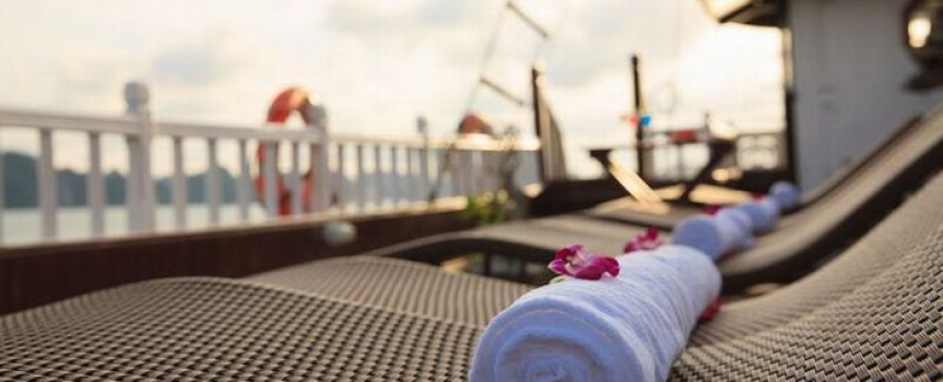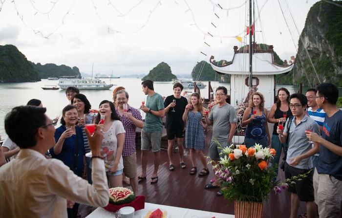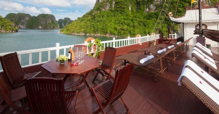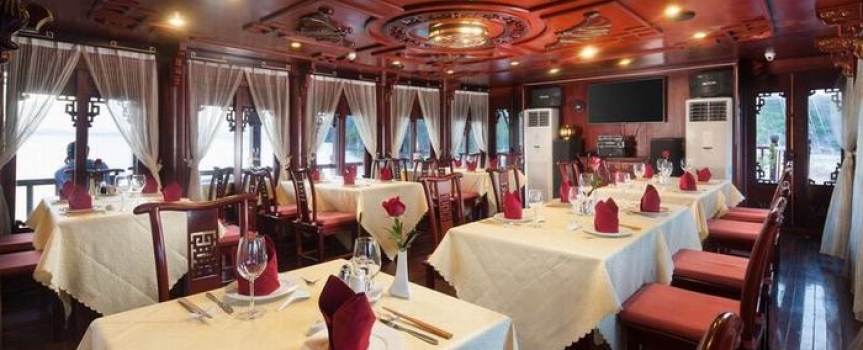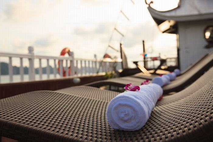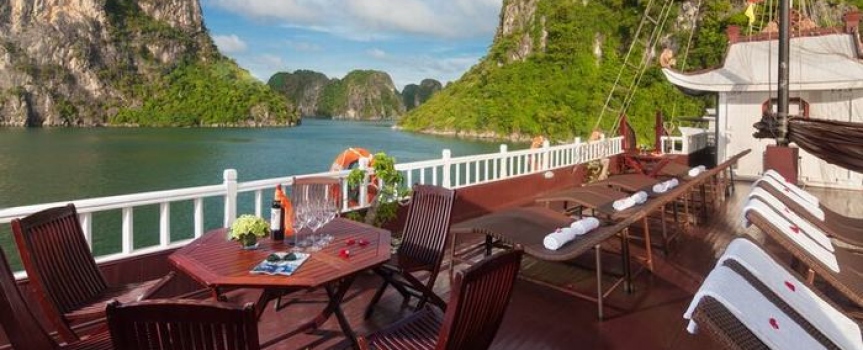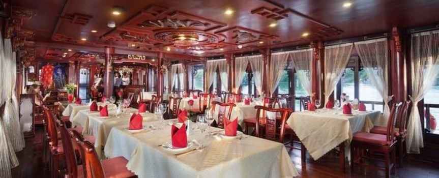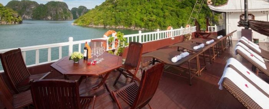 18:15 Tiệc Sunset Party trên boong tàu với rượu hoặc ly nước hoa quả và trái cây tươi, cùng nghe những bản nhạc du dương trên sundeck.