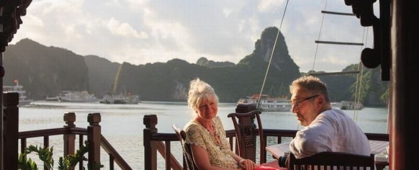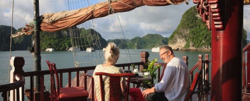 06:00 Quý khách có thể dậy sớm ngắm bình minh tuyệt đẹp trên mặt vịnh Hạ Long và tập thể dục buổi sáng với lớp học Taichi.