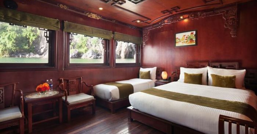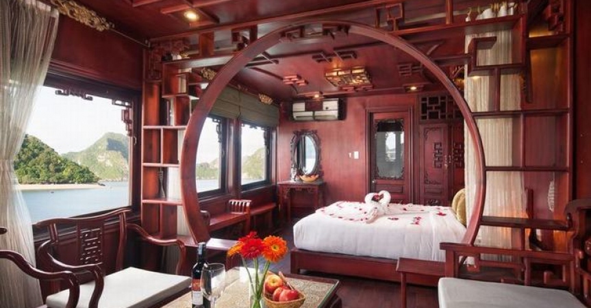 12:30 Đến Tuần Châu, quý khách làm thủ tục lên tàu Royal Palace Cruise, thưởng thức đồ uống chào mừng welcome drink và nhận phòng.