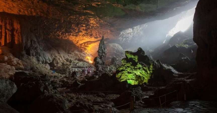 08:00 Thăm Hang Sửng Sốt – một trong những hang động lớn và đẹp nhất trên vịnh Hạ Long.