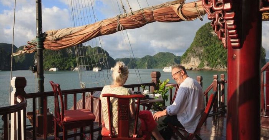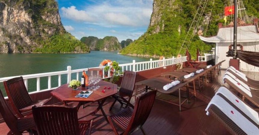 13:00 Thưởng thức bữa trưa trong khi tàu du ngoạn qua hàng ngàn đảo đá vôi kì vĩ.