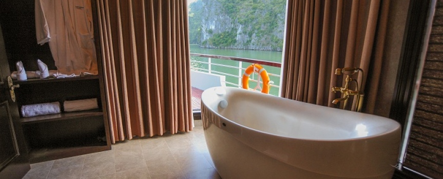16h30: Làm trẻ hóa cơ thể và tâm hồn của bạn với bể sục, phòng tắm hơi, phòng tập thể dục và mat-xa * trên boong thứ ba (* mat-xa sẽ được thu phí theo gói dịch vụ mà quý khách lựa chọn).