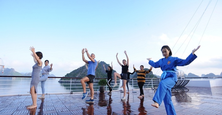 06h00: Chào ngày mới với lớp học vovinam – môn võ thuật của Việt Nam, ngắm cảnh mặt trời mọc trên vịnh xanh trong lúc thưởng thức 1 ly trà hoặc cà phê sẵn sàng bắt đầu một ngày mới đầy hứng khởi.