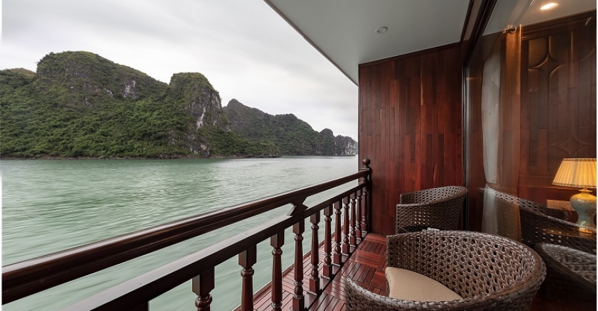 12h30: Quý khách lên tàu và nhận phòng, thưởng thức một ly nước uống chào mừng trong khi nghe thuyền trưởng giới thiệu về chương trình.
