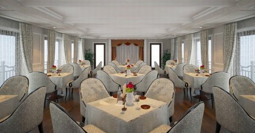19:15: Bữa tối được phục vụ trên tàu với nhiều món ăn ngon, hấp dẫn.
