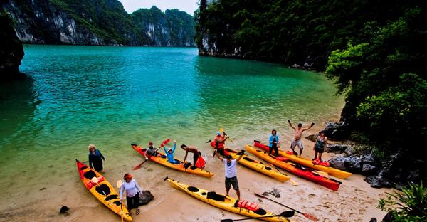 09:00: Quý khách chuyển sang tàu chuyển tải, tiếp tục hành trình đến với khu vực Cống Đầm – nơi đây được biết đến với những bãi biển có cát trong sạch nhất. Tại nơi đây, bạn có thể tự mình chèo kayak, bơi hoặc thư giãn bên bờ biển yên tĩnh.