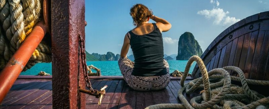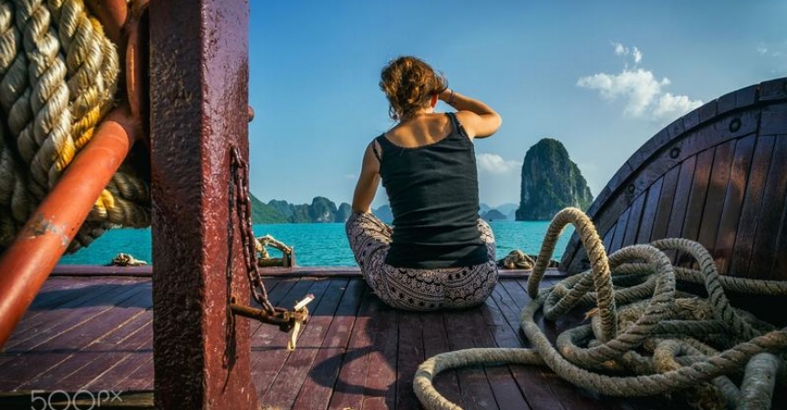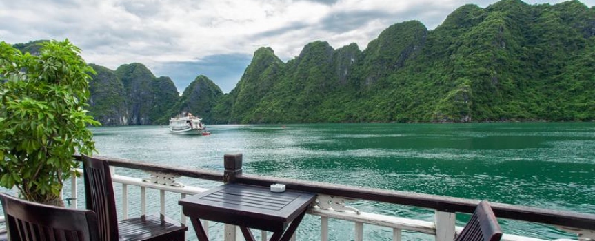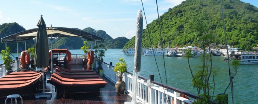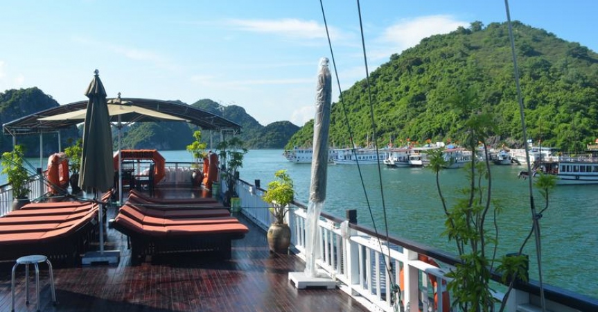 Quay trở lại tàu để nghỉ ngơi, thư giãn trên Vịnh Lan Hạ.