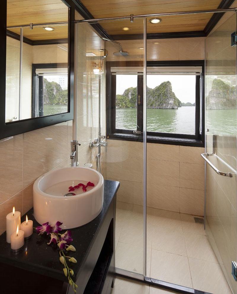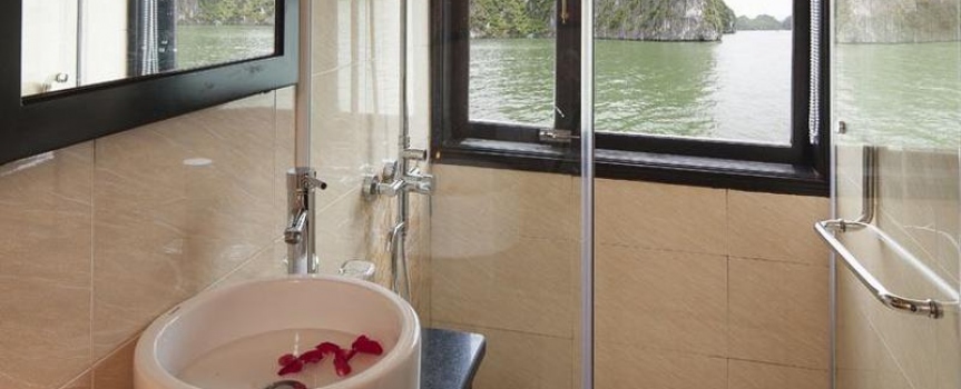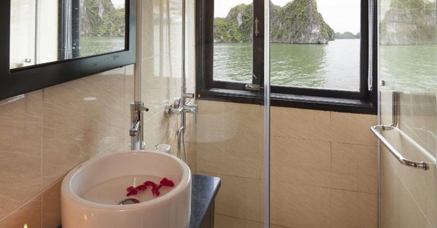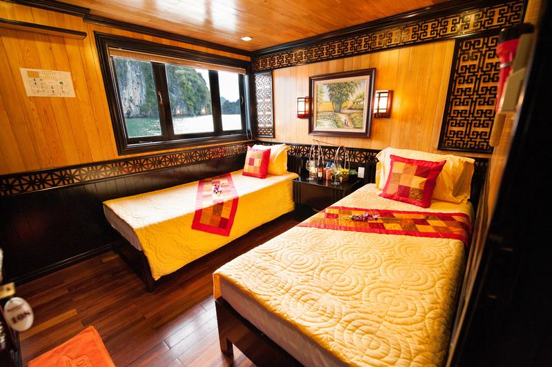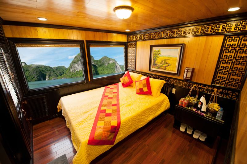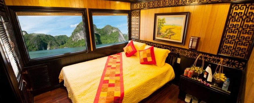 Du thuyền Việt Beauty 14 cabin đều được trang bị đầy đủ tiện nghi giúp du khách luôn cảm thấy thoải mái với điều hòa, tủ lạnh, TV, giường đệm êm ái, phòng tắm sạch sẽ, tiện nghi. Cửa sổ lớn hướng biển tạo cảm giác như được đắm chìm trong màu xanh bao la.