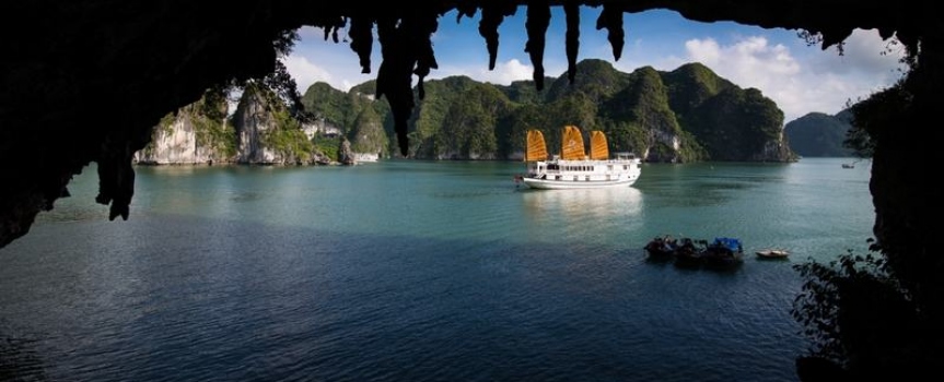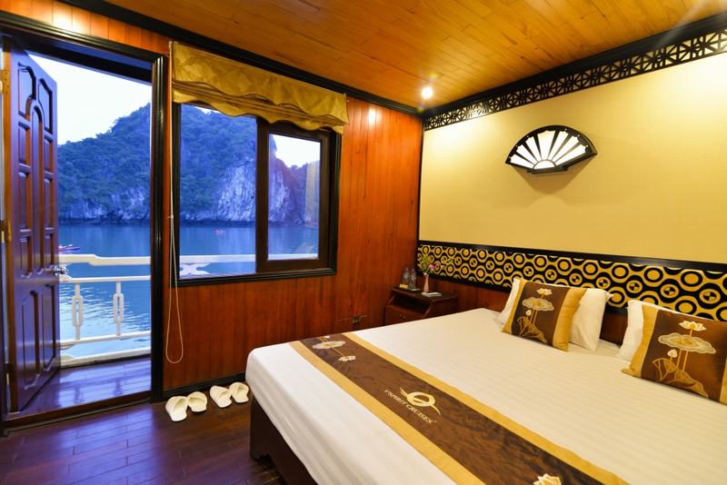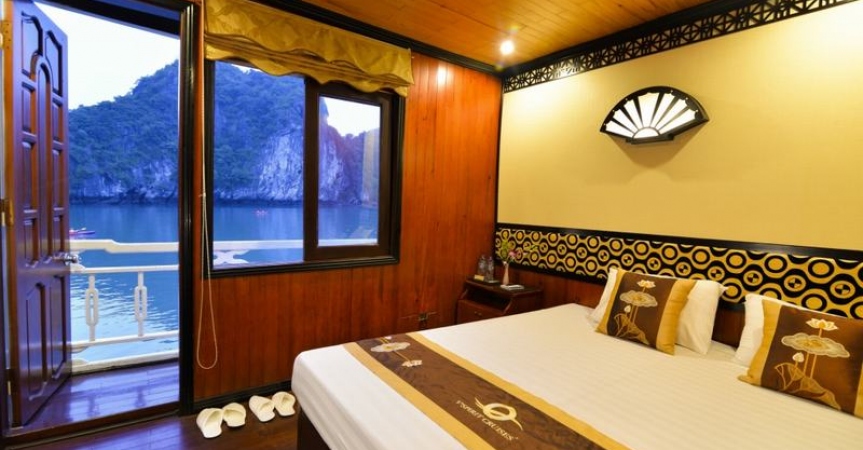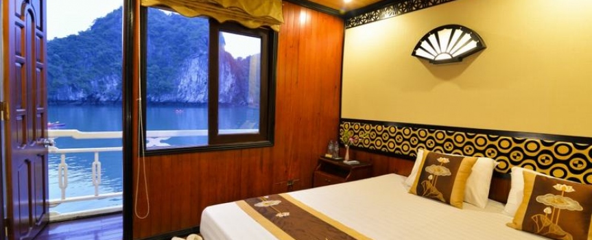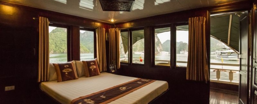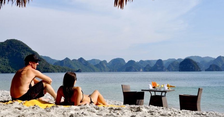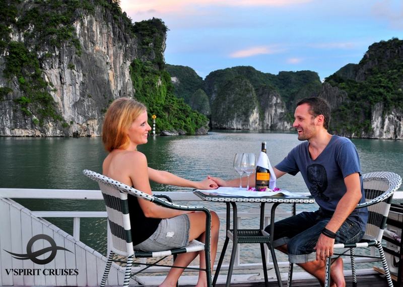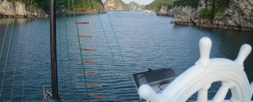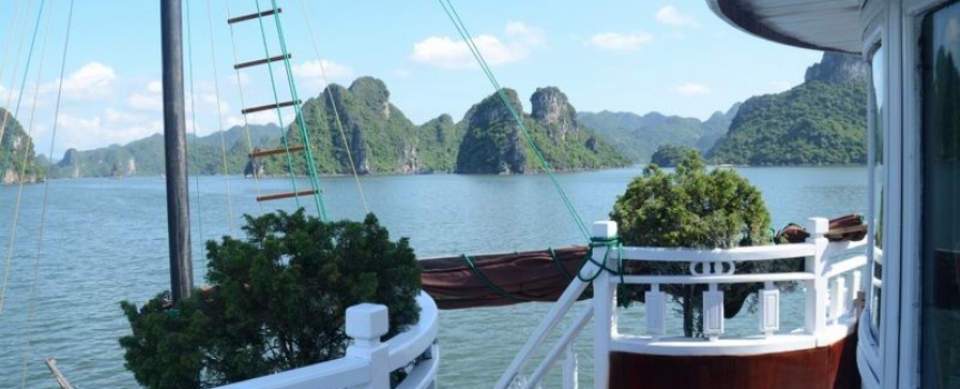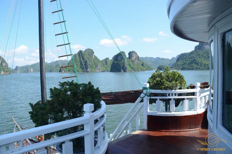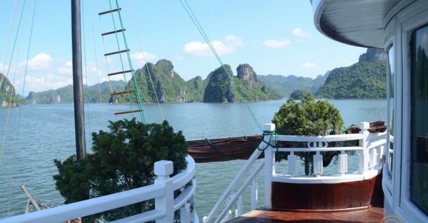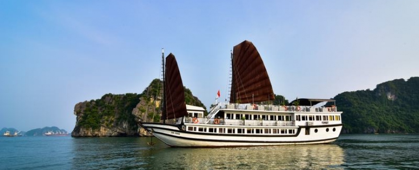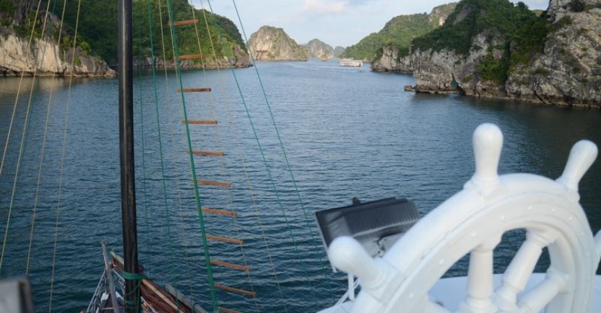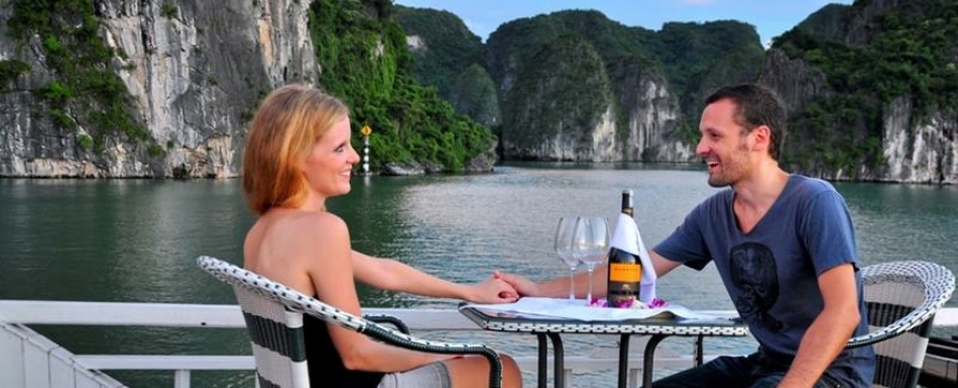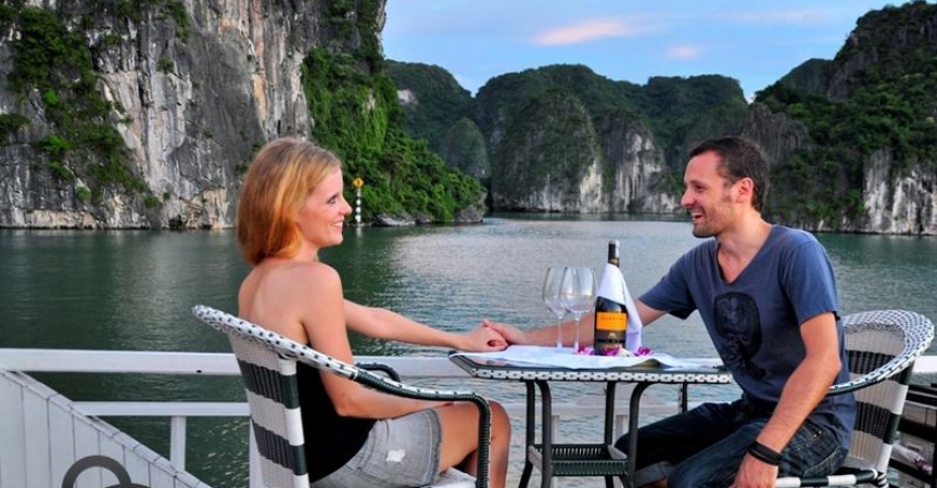 13h30 – 14h30 Du khách được tận hưởng bữa trưa đầu tiên của chuyến đi trong lúc tàu di chuyển qua những đảo đá, hang động kỳ vĩ theo thời gian như động Thiên Cung, hang Đầu Gỗ,...