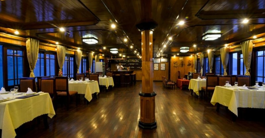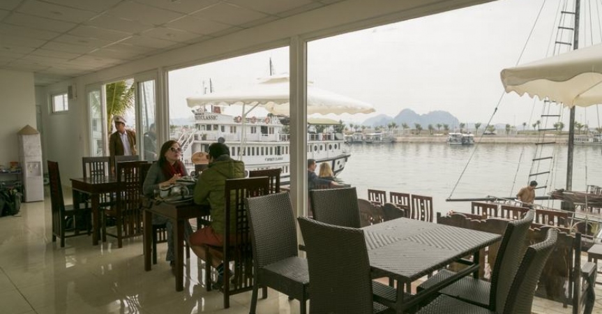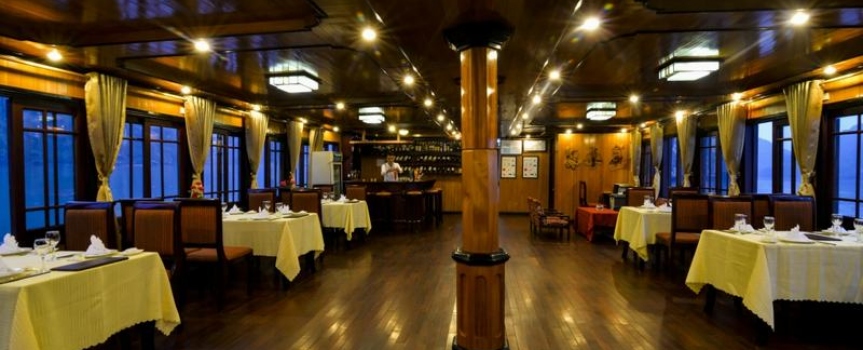 07h30 – 08h00 Khách dùng bữa sáng trên tàu, tận hưởng vẻ đẹp ban sơ của Vịnh Hạ Long lúc nắng lên.