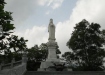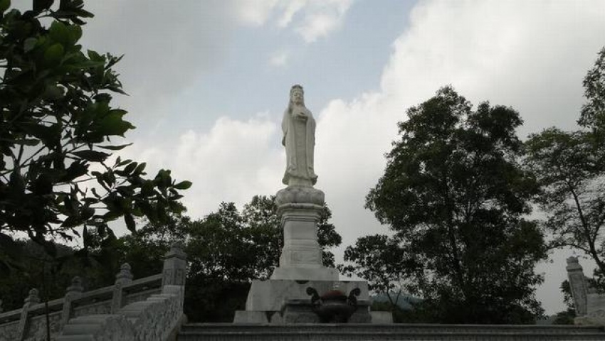 Tượng Phật Quan Âm nghiêm trang trước khuôn viên chùa