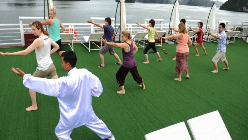06:30: Quý khách thức dậy với bài hướng dẫn tập Thái Cực Quyền trên sundeck của tàu