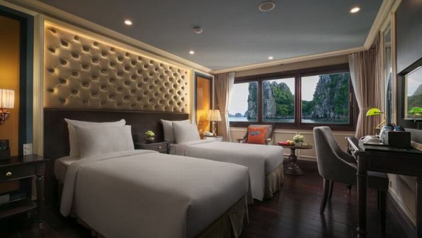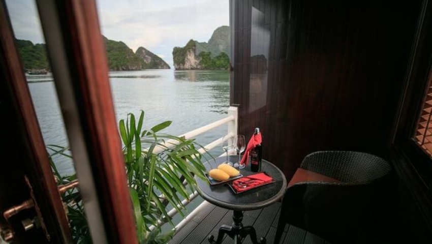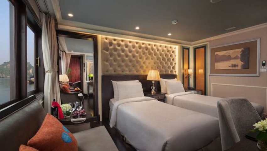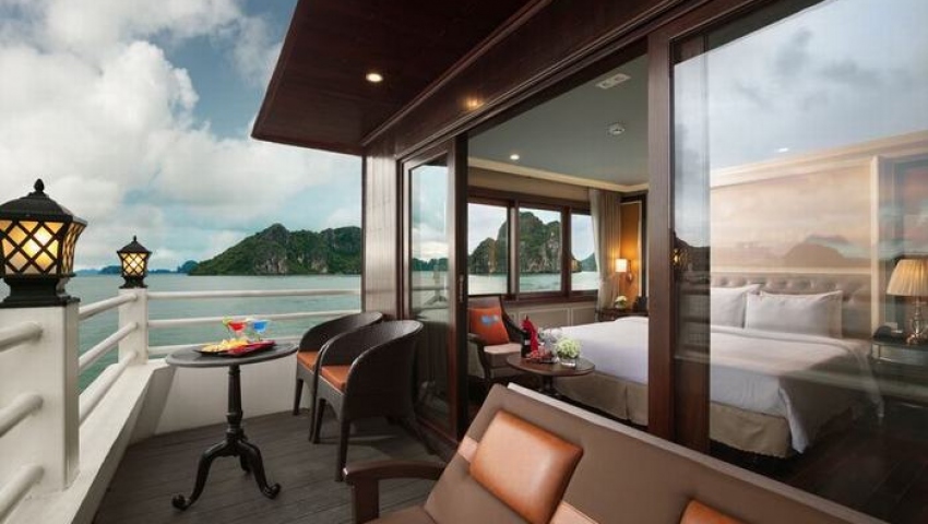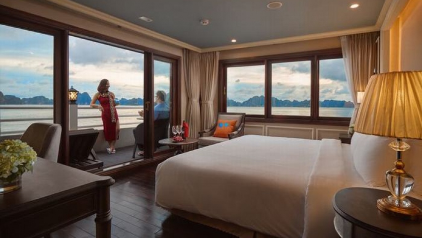 - Ngủ đêm trên du thuyền Athena ( du thuyền mới nhất và hiện đại nhất trên vịnh Hạ Long), Cabin ban công sang trọng có điều hoà hai chiều.