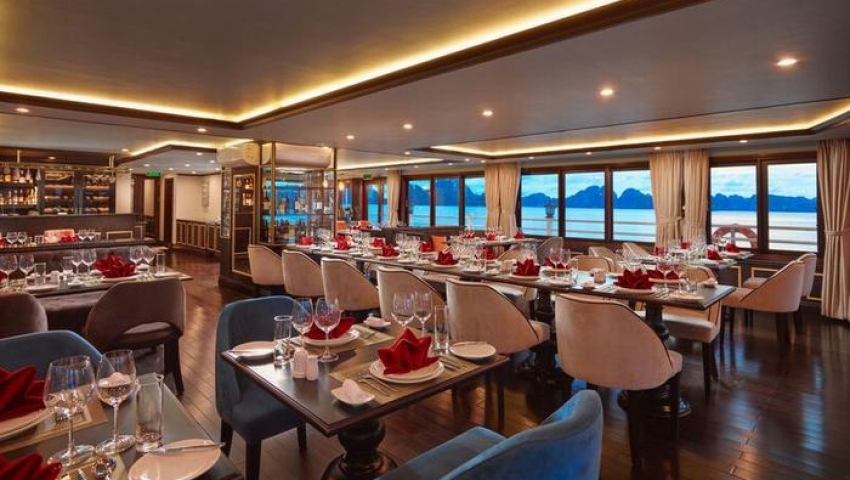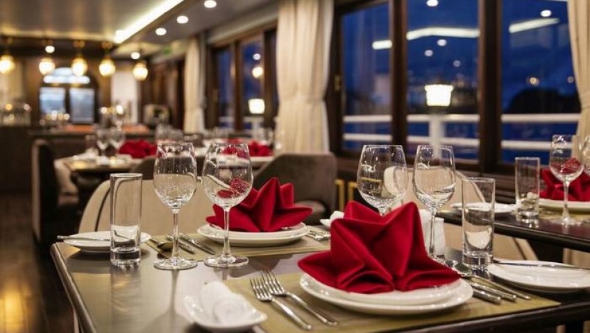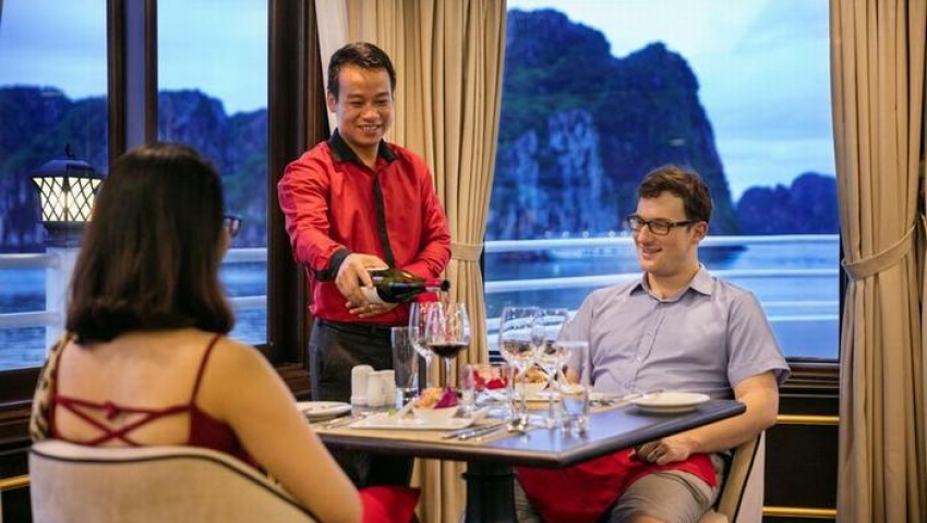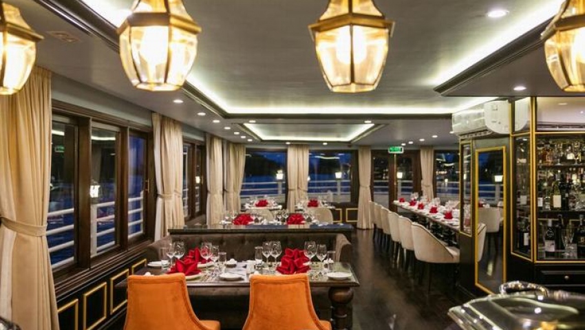 19:00 – 20:30: Hòa mình trong không gian ấm cúng lãng mạn tại nhà hàng – thưởng thức bữa tối với các món ăn thơm ngon hấp dẫn do chính đầu bếp trên tàu thực hiện