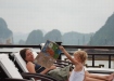 17h30 – 19h00 Thưởng thức đồ uống trên bong tàu, chụp ảnh về toàn cảnh Vịnh Hạ Long, bơi hoặc thả mình ngắm cảnh mặt trời lặn.