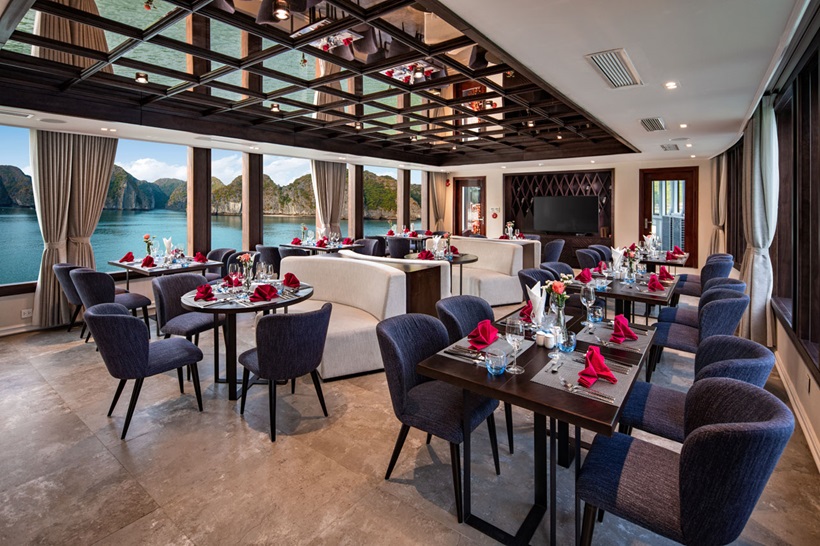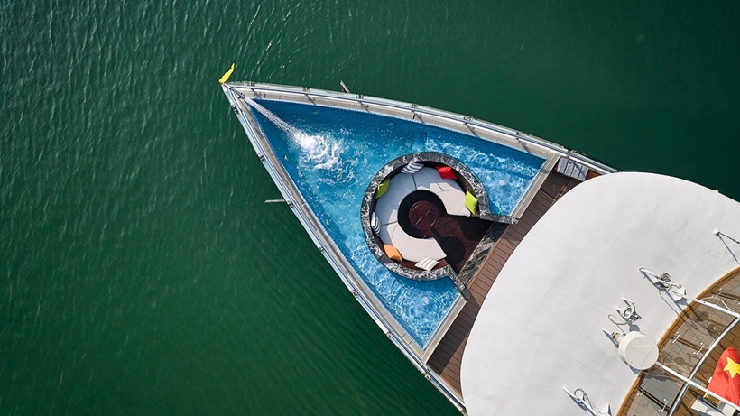 - Quý khách cũng có thể lựa chọn hoạt động ngâm mình trong bồn sục Zacuzzi lớn tại phía mũi của du thuyền là trải nghiệm đặc biệt khác biệt.