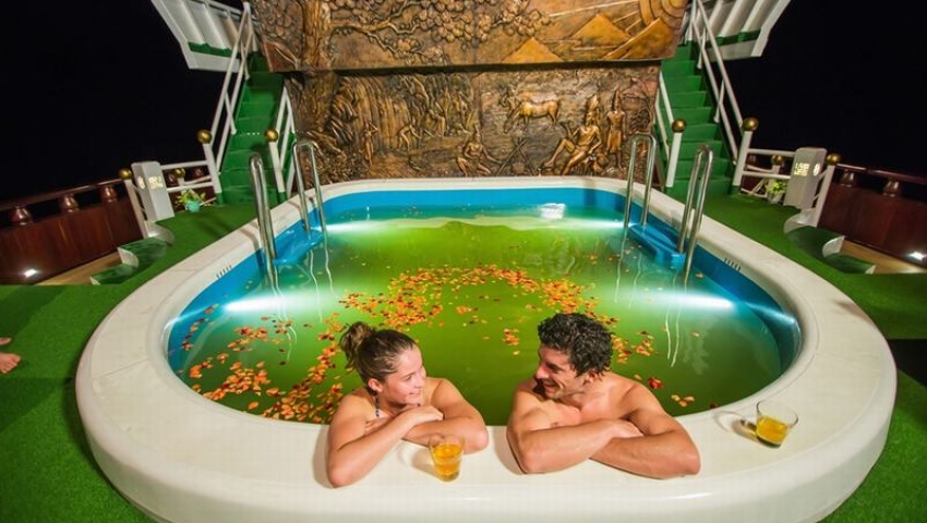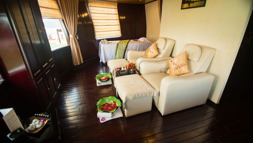 Thưởng thức bữa tiệc ngọt với hoa quả tươi dưới ánh hoàng hôn. Sử dụng các dịch vụ mát xa, làm đẹp trên du thuyền.