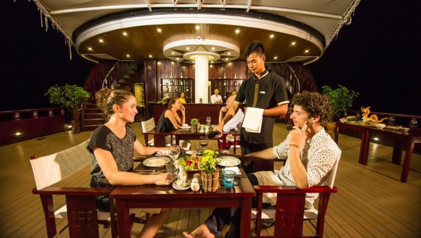 Khoảng 4 giờ 30 chiều, quý khách quay trở lại tàu to để thưởng thức đêm thứ 2 trên du thuyền