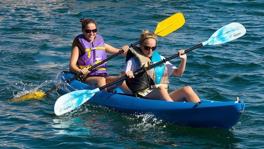 Sau khi ăn trưa, đoàn sẽ chèo thuyền kayak tự khám phám các đảo đá xung quanh.