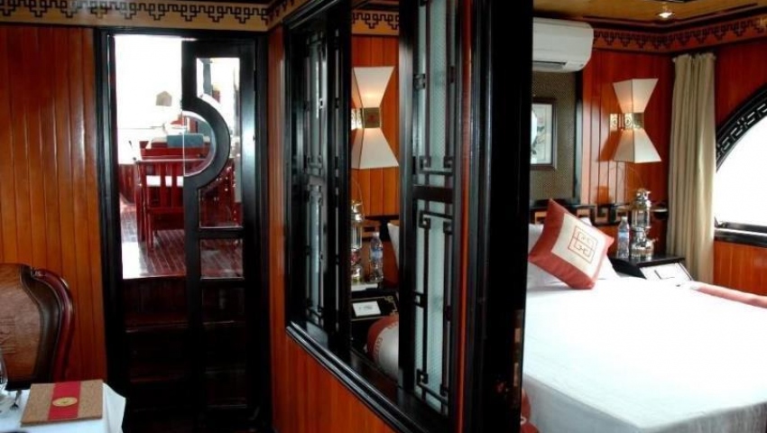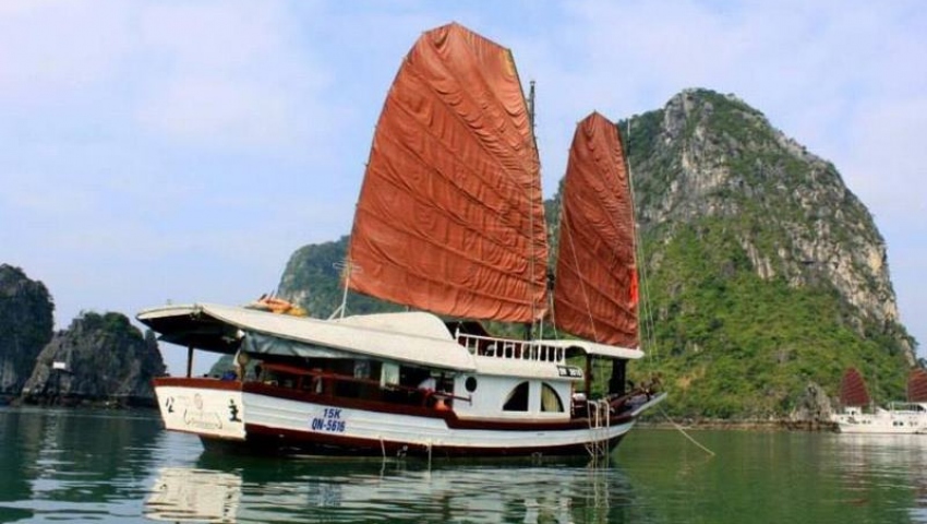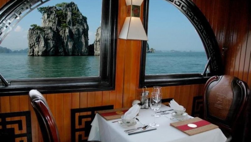 12.30: Tender đưa ra Du thuyền. Quý khách lên Du thuyền trong sự nồng nhiệt chào mừng của anh em thuỷ thủ đoàn. Thưởng thức ly rượu, nước hoa quả chào mừng trong khi thuyền trưởng, hướng dẫn viên trên Du thuyền trình bày cụ thể về hành trình 3 ngày 2 đêm. Quý khách nhận phòng, nghỉ ngơi. Du thuyền dần dần rời bến, bắt đầu hành trình khám phá Di sản thiên nhiên thế giới Vịnh Hạ Long.
