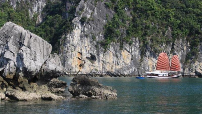 13.30: Du thuyền đưa Quý khách ngang vịnh Hạ Long tới vịnh Bái Tử Long, ngắm nhìn trăm ngàn đảo đá với hình thù kỳ lạ như núi Bài Thơ, hòn Ấm, hòn đầu người, Phim trường quay phim Đông Dương.