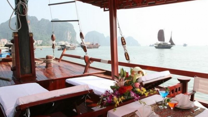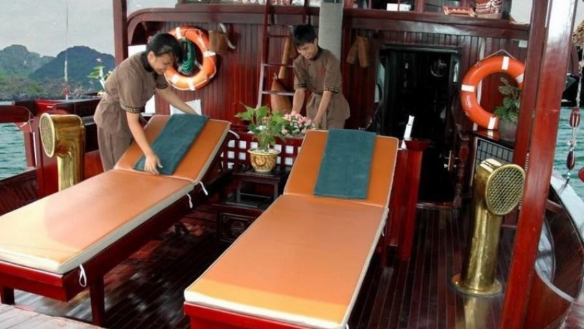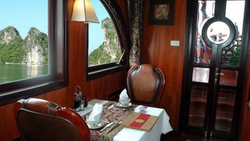 18.00: Kết thúc chương trình buổi chiều, Quý khách về Du thuyền , nghỉ ngơi ngắm cảnh mặt trời lặn từ cửa sổ phòng được thiết kế đặc biệt có thể ngắm cảnh biển từ nhiều hướng.