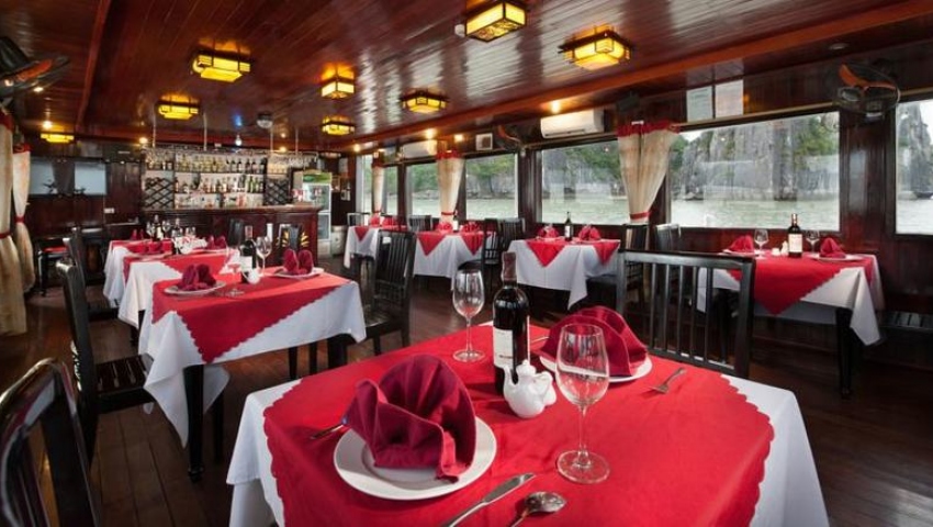 18h30: Phục vụ quý khách ăn tối tại nhà hàng trên du thuyền.