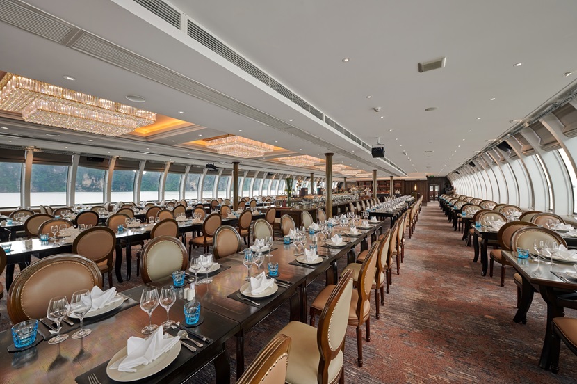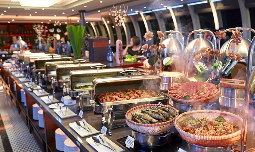 11.30: Thưởng thức thực đơn buffet hảo hạng trong khi du thuyền đi ngang qua các danh lam thắng cảnh nổi tiếng như Thiên Cung và Hang Đầu Gỗ. Những nguyên liệu tươi ngon, được chọn lựa và chuẩn bị kỹ lưỡng dưới bàn tay của những đầu bếp tài ba trong không gian nhà hàng sang trọng với tầm nhìn vô tận ra kỳ quan thiên nhiên.
