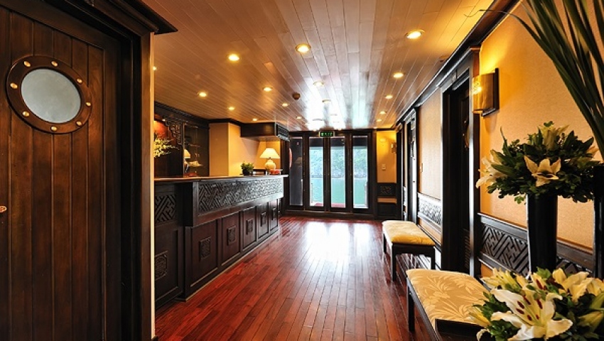 Sau khi lên Du thuyền Paradise Luxury, du khách sẽ được hoàn thiện thủ tục nhận phòng, ghé thăm nhà hàng để thưởng thức đồ uống chào mừng và lắng nghe quản lý tàu giới thiệu về lịch trình trong chuyến đi 3 ngày 2 đêm cũng như những quy định về an toàn trên tàu.
