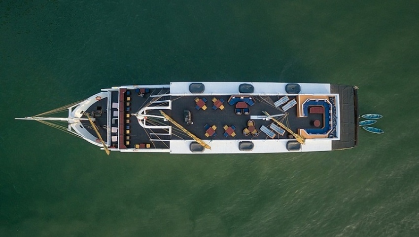 Trong khi tàu rời bến và tiến sâu vào vịnh Hạ Long, du khách sẽ có thời gian thưởng thức bữa trưa thịnh soạn tại nhà hàng và chiêm ngưỡng cảnh đẹp kì vĩ của Di sản Thiên nhiên Thế giới.