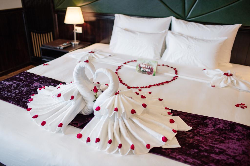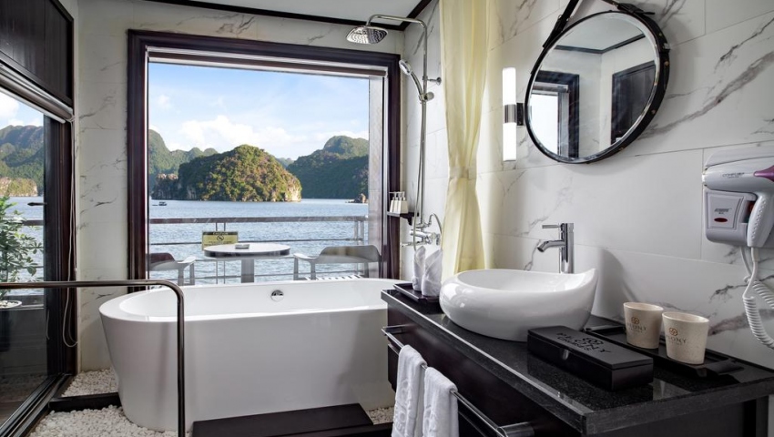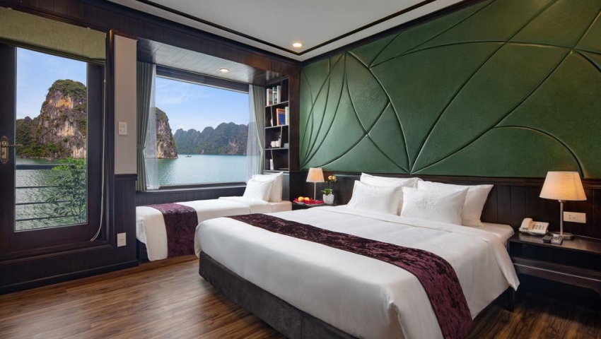 - Đồ uống chào mừng, khăn lạnh, hoa và trái cây tươi, 2 chai nước khoáng tại mỗi cabin