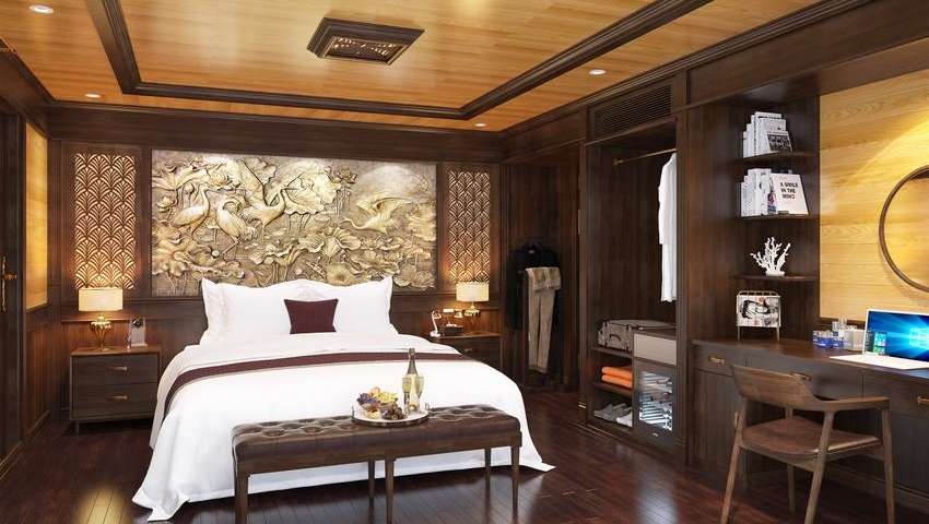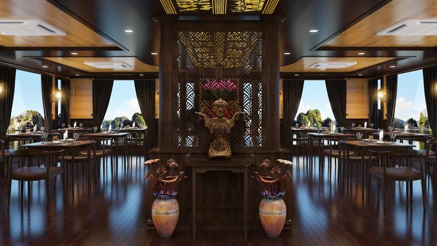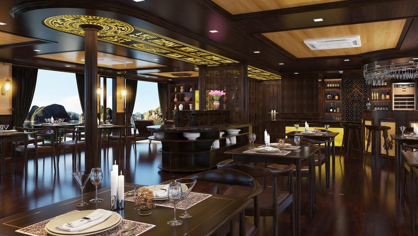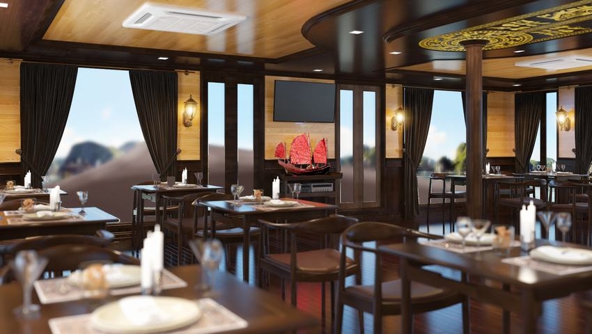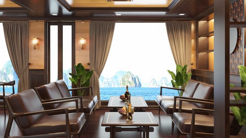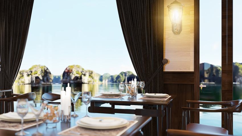 13:00 – 14:00: Du khách dùng bữa trưa trong nhà hàng cùng lúc tàu tiến sâu vào vịnh Lan Hạ và chiêm ngưỡng các đảo đá lớn, nhỏ tạo nên một cảnh sắc vô cùng hùng vĩ.