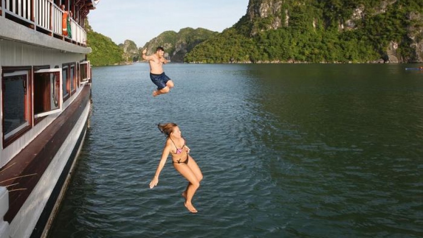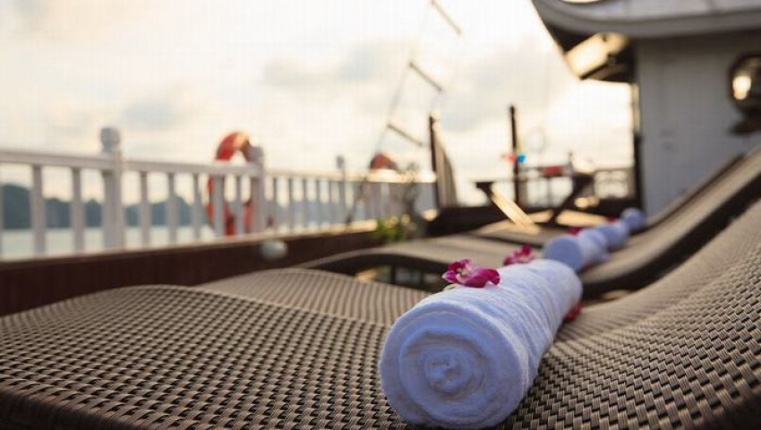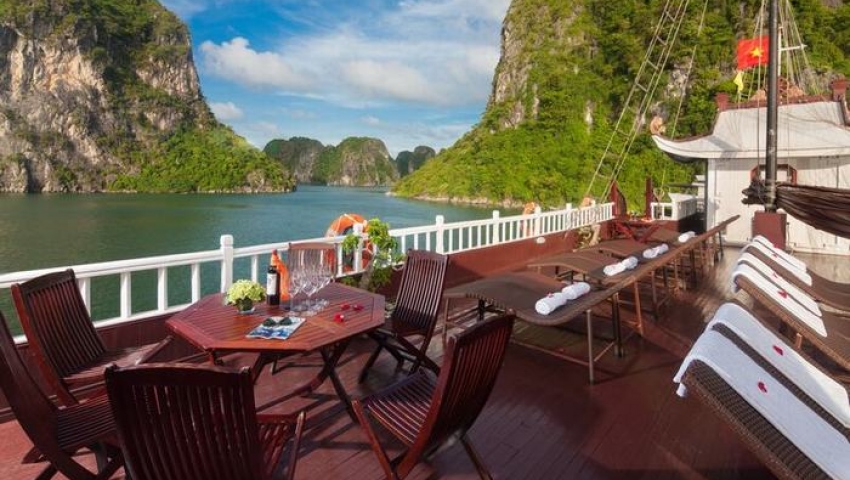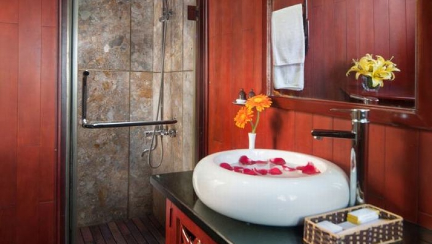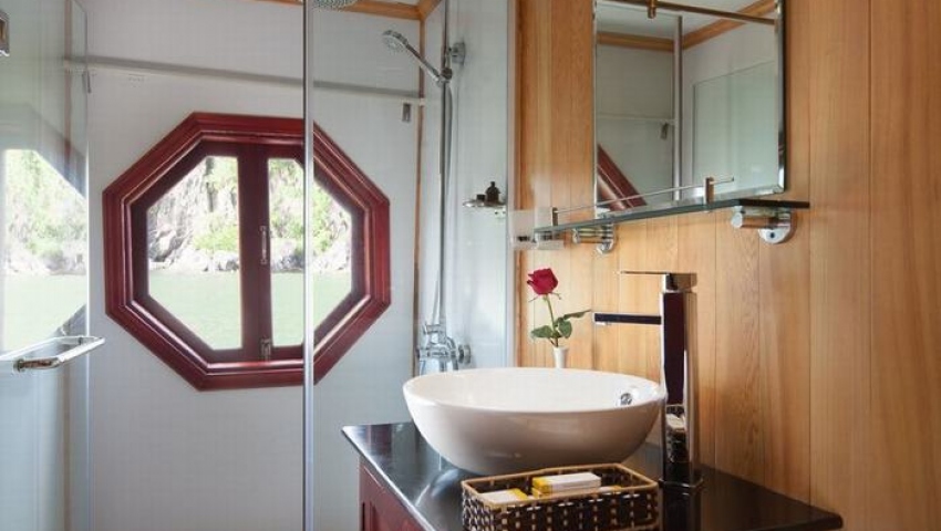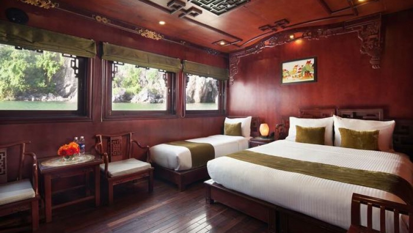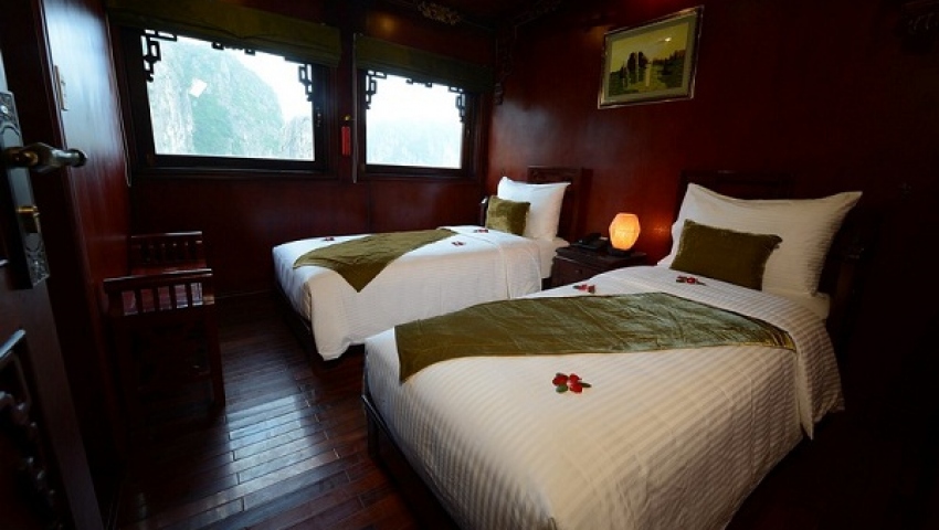 - Phòng nghỉ trên tàu với đầy đủ nóng lạnh, điều hòa